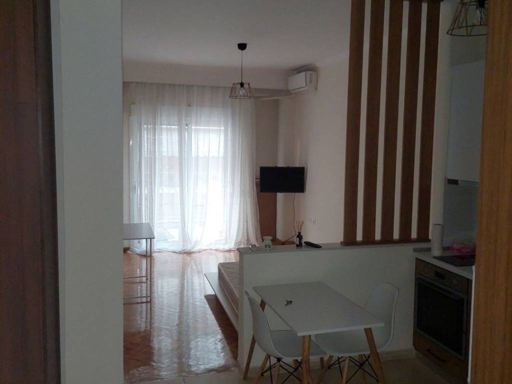 Αποτελείται από σαλοκουζίνα με χώρισμα για υπνοδωμάτιο. Πλήρως ανακαινισμένο,άνετο,φωτεινό, επιπλωμένο,θωρακισμένη πόρτα, ντουλάπες,όλα τα ηλεκτρικά, πλυντήριο ρούχων. Βλέπει μπροστά με μπαλκόνι επί της Μ.Αλεξάνδρου και Πλατεία Εμπορίου (αστικά λεοφωρεία)