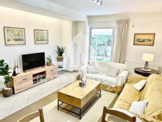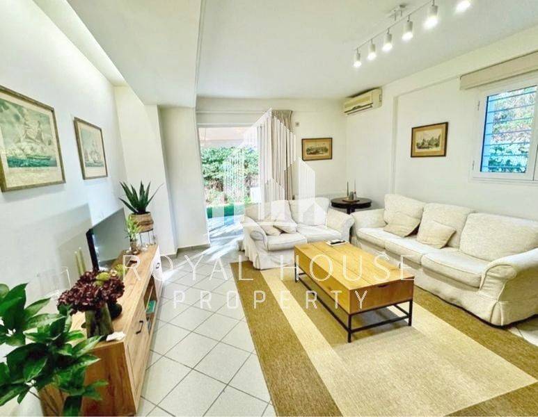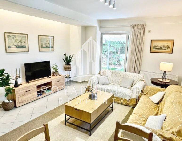 Voula, Centre - Apartment 75sqm fully furnished, bedrooms 2, levels 1, ground floor, renovated, year built 2003, energy class D, living room, kitchen, bathroom, heating type: autonomous (oil), air condition, parking ground floor, quiet, dual aspect apartment, luminous, frontage, painted, balconies, tents, garden, aluminum frames, double glazed windows, door screen, ceramic tiles floors, secure door, pets allowed, residential zone, special offer.
