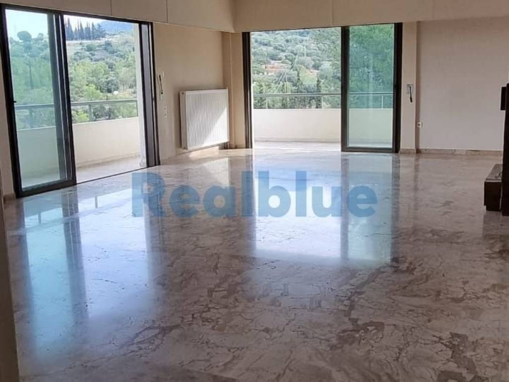 Papagos , in an excellent area this apartment of 150 sq.m. with mountain and green view is leading on the 5th floor of a well maintained building constructed in 1982. It offers 3 bedrooms + an office , 2 bathrooms, a large and Sunny living room with fire place , large veranda , underground parking spot , autonomous heating with natural gas . Price : 500,000€ ID: blue233 tel.:+30 698 3863400 info@realblue.gr