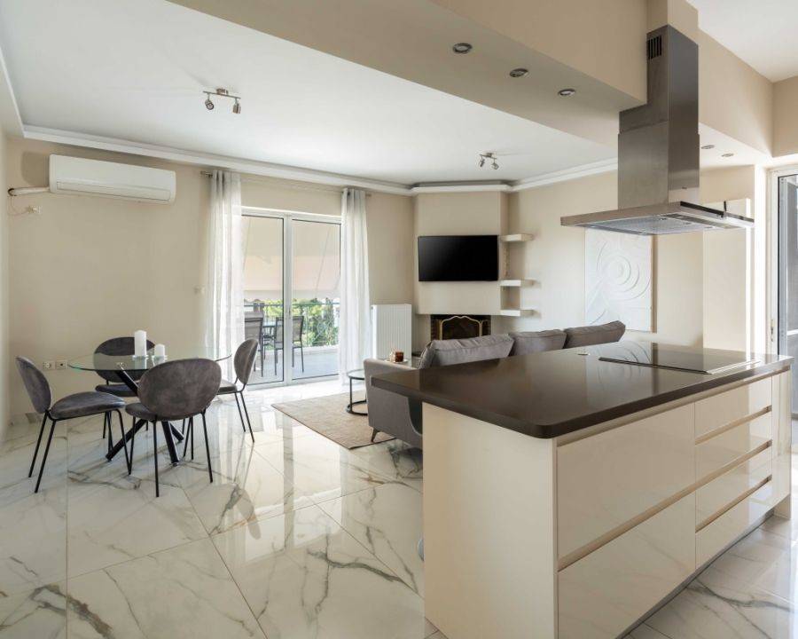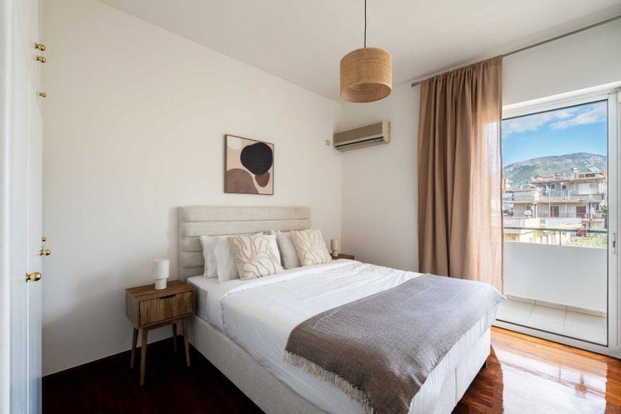 Elliniko, Ano Elliniko, Apartment For Rent, 80 sq.m., Property Status: Amazing, Floor: 3rd, 1 Level(s), 2 Bedrooms 1 Kitchen(s), 1 Bathroom(s), Heating: Autonomous - Petrol, Building Year: 1993, Energy Certificate: C, 1 parking(s), Floor type: Wooden floors + Tiles, Type of doors: Aluminum, Features: Elevator, Security door, Fireplace, Night stream, Cable TV, Internet Line, Electric Appliances, Double Glazed Windows, Window Screens, Balcony Cover, Balconies, Furnished, Luxury, Airy, Roadside, Bright, AirConditioning, Solar water system, Painted, Renovated, Price: 1.500€. Yestayhomes, Tel: 6986749007