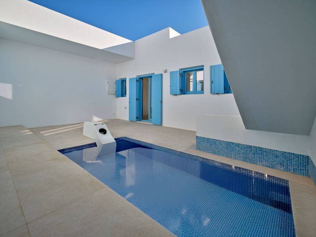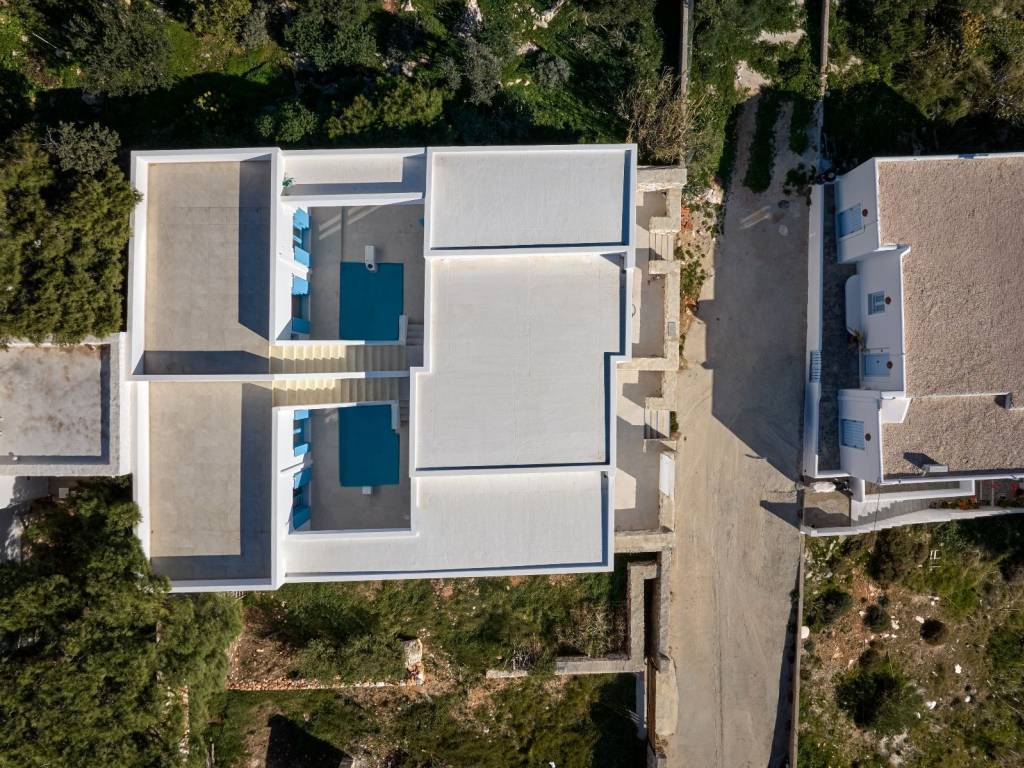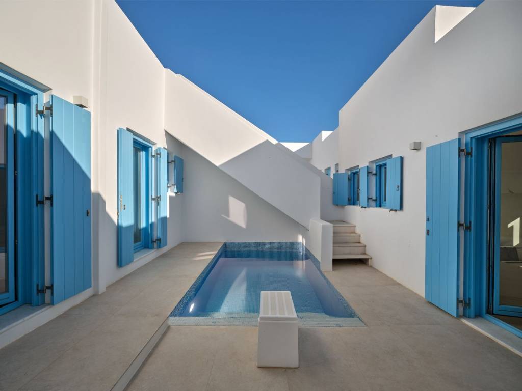 Exceptional property for sale in Naoussa, Paros, consisting of two newly built residences on a 302 m² plot, within walking distance from the town center. Each residence offers approximately 95 m² of modern living space and is developed across two separate buildings, elegantly connected by a semi-outdoor area with a private swimming pool of 12 m². The main building features a spacious living and dining area, a contemporary kitchen, and a guest bathroom, while the second building hosts two independent en-suite bedrooms, offering privacy and comfort. Designed to enhance indoor-outdoor living, this property combines high aesthetics with functionality and is an ideal choice for a holiday home or investment in one of the most sought-after locations in Paros.