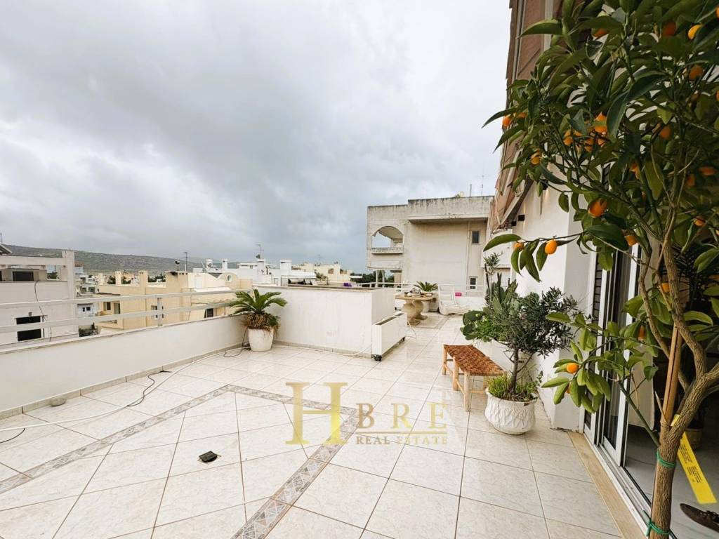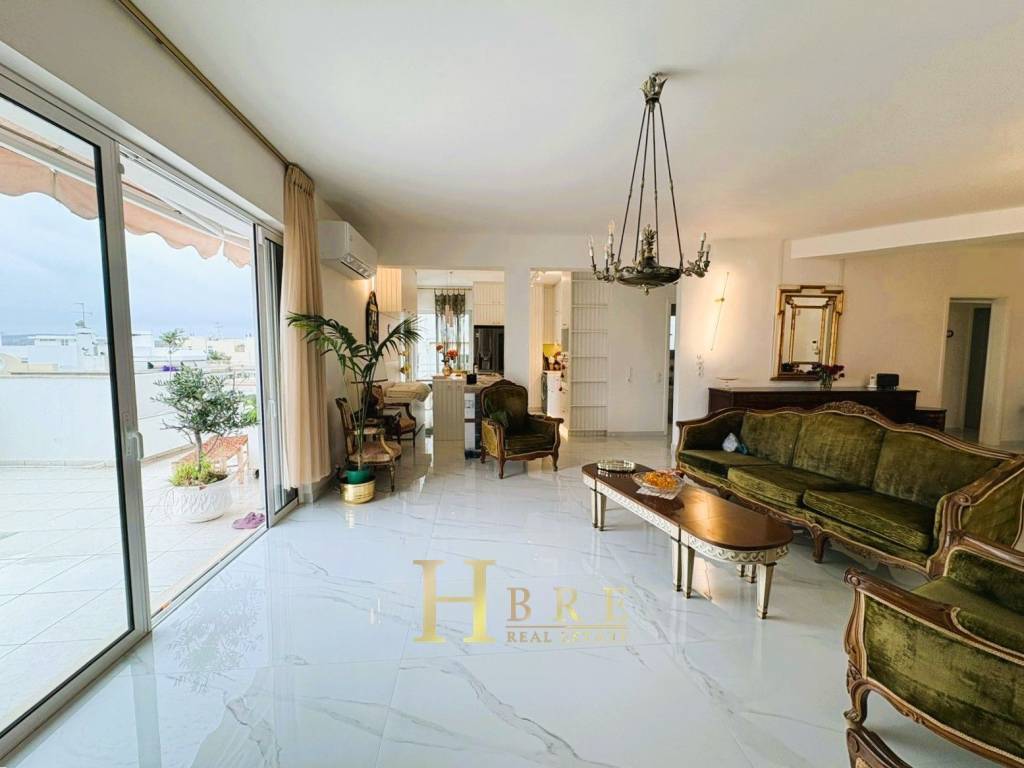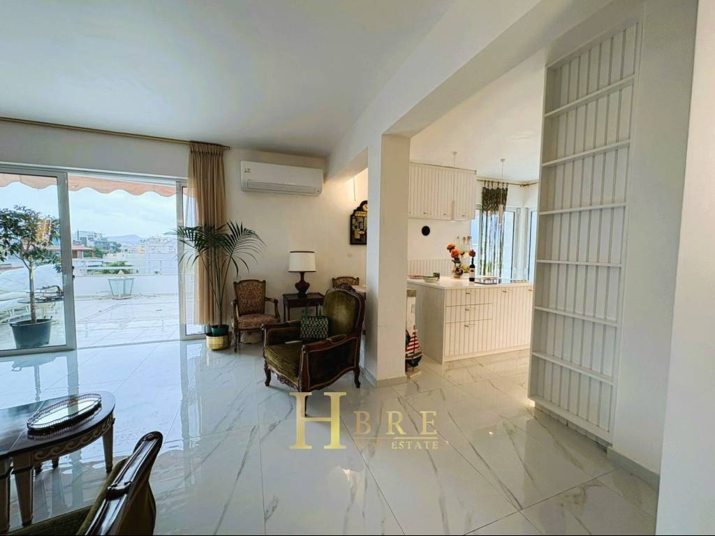 A 130 sq.m. penthouse apartment is available for sale in Varkiza, located in a prime area just 430 meters from the beach and the vibrant local market. Originally built in 1980, the property was fully renovated in 2024 to modern standards, offering a perfect blend of comfort, functionality, and refined aesthetics. The living area features a spacious and bright lounge with a fireplace, providing direct access to large verandas with open views—ideal for relaxation and entertaining. The kitchen is open-plan, modern, and generously sized, designed to accommodate both everyday living and social gatherings. The apartment includes 2 comfortable bedrooms, with the option to create a third, as well as 2 fully renovated bathrooms. The outdoor spaces extend to approximately 100 sq.m., featuring expansive verandas with a built-in barbecue area, perfect for outdoor dining and hosting. Additional features include aluminum window frames with double glazing and insect screens, awnings, a security door, three air conditioning units, thermal facade insulation, and brand-new plumbing and electrical installations, ensuring energy efficiency and safety. The property also offers 2 storage rooms and 2 parking spaces, adding practicality and convenience. An excellent choice for both private residence and investment, in one of the most sought-after locations of the Athenian Riviera.
