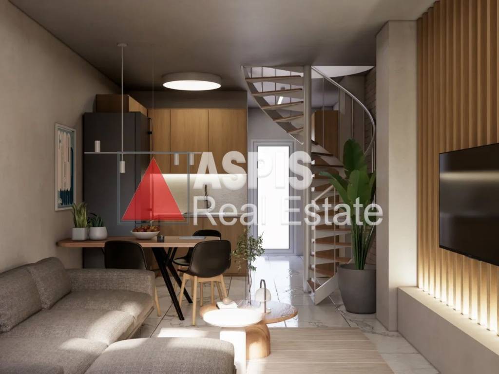 Loft for sale 55 sq.m., in Ampelokipi, Thessaloniki, in an area with a local market, shops, restaurants and public transport. It is located on the ground floor of the building, is front and very bright. It consists of 2 levels, on the 1st there is a living room and kitchen and a bathroom, and on the 2nd there is a bedroom, and in addition there is a courtyard. It is radically renovated, fully furnished and equipped with state-of-the-art electrical appliances. It has, among other things, autonomous heating with electricity, synthetic frames, state-of-the-art air conditioning, screens, and a security door. It is ideal for owner-occupancy but can also be used as an investment.