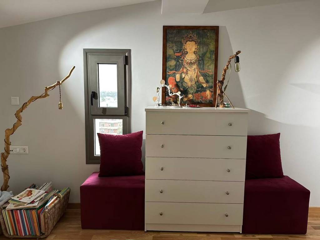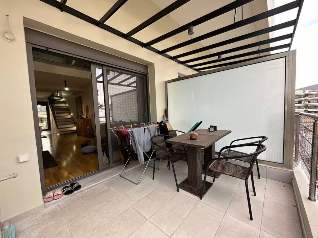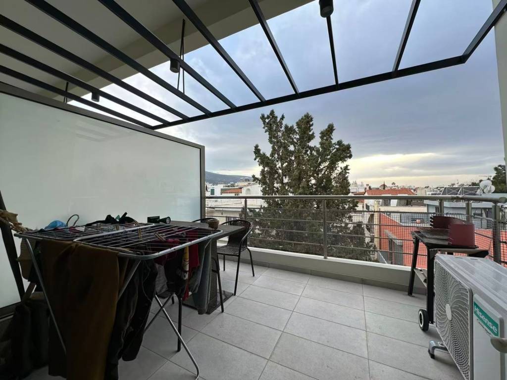KATO XALANDRI, Apartment 64 sq.m., furnished, 2 levels, 4th floor, year of construction 2023, newly built, 1 b/r, living room, fireplace, bathroom, 1 WC, kitchen, double-sided, front facing, bright, corner, heating n/a, solar panel, air condition, with energy class A+, with floor type n/a, with aloyminioy joinery, double glazing, elevator, door tv, security door, veranda, open garage, price 1.500€, code 3162 WeReal