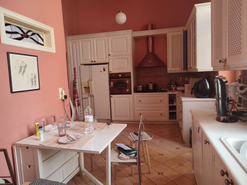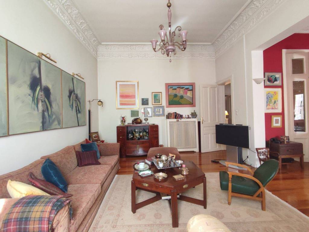 A collectible and truly unique apartment located in a three-residence building dating back to the 1920s, within an exceptionally well-maintained property of distinctive artistic and architectural significance. This grand bourgeois interwar apartment features a private entrance and elevator. High ceilings adorned with impressive decorative plasterwork, wooden flooring, ornate internal doors, and finely crafted window frames are among the key elements that highlight the building’s refined aesthetic. The apartment comprises an entrance hall, an exceptionally spacious double living room, three bedrooms—one of which includes an en-suite bathroom—a large separate kitchen, and an additional bathroom. The property also benefits from exclusive use of the rooftop terrace. Heating is provided by an autonomous natural gas system. Real estate agency EKTIMISI: valuation, respect for the client, consulting services, and prompt assistance.