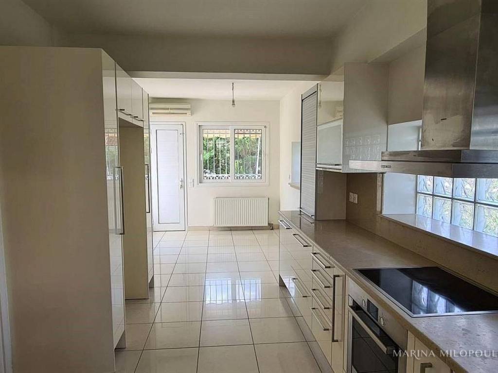 Voula - Kalimniotika, Detached house with a total area of 432 sqm, 3 above-ground levels (336 sq m) plus a 96 sqm semi-basement, within a 285 sqm plot with a swimming pool. Renovated in 2023. It is characterized by the combination of classic and modern aesthetics, corner plot in a quiet spot on a dead-end street offering extra safety for children. It features a private garden with a 30sqm swimming pool, central heating, air conditioning, a fully equipped kitchen, an elevator, telephone center wiring, a wine cellar, marble and oak floors. It consists of the elevated ground floor with the reception area, dining room and 1 wc. On this level, a large terrace, which is an extension of the living room, has been designed as the main area offering a direct view of the garden and the pool At the level of the 1st floor, is the daily living room, large kitchen with all electrical appliances and 1 wc. On the 2nd floor level, 3 bedrooms, of which 1 is the master bedroom plus 1 additional bathroom. On the 3rd floor, a single space high-ceilinged attic with exit to a large terrace with mountain and sea views, which can be configured into roof garden with sea view. The semi-basement is a large independent multi-purpose room, with good natural lighting, having its own exclusive entrance with communication from the garage. It has a living room, 1 bedroom, 1 bathroom, 1 dressing room as well as all the storage areas of the residence. Distance from local market 800 meters, 2 km from Voula's square, 1.8 km from Kavouri Apollon beach and 19 km from the intern. airport.