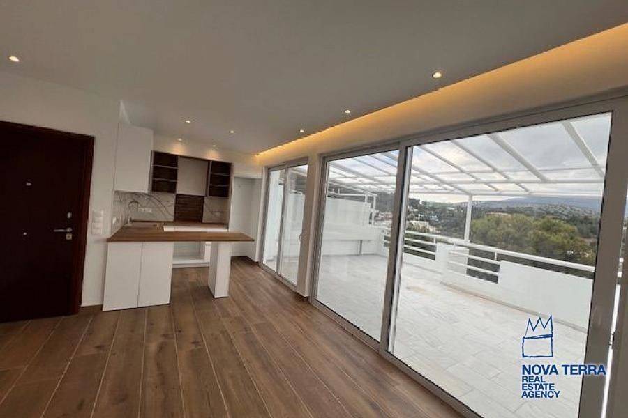 VARKIZA - VARKIZA, Penthouse,, Sale, 64 sq.m, year built 1980, renovated in 2025, 2 rooms, 4th, View: Seaview, Unobstracted view, Various Characteristics: Balcony, Bath, Escalator, Kitchen, Living room, Penthouse, Refurbished, Flooring: Murble, Heating: Air Conditioning, Autonomous Heat oil, Access road, Aluminium panels, Bright, Corner Block, Double-glazing, Electric Roller Windows, Facade, From Side to Side, Luxury, pets allowed, Satellite TV, Screens, Security Alarm, Security Door, Tents, Weekend Residence, In perfect condition: Pets allowed: Satellite dish: For investment: Energy class: B+. property ID: 42750, www.nova-terra.gr