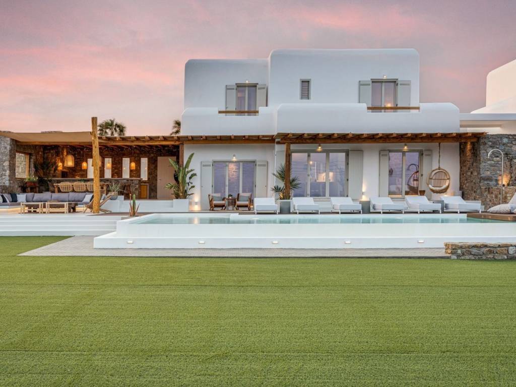 Villa for sale in Mykonos, in the area of Kalafatis, with a total area of 178 sqm, located on a plot of 1,350 sqm. It consists of 4 bedrooms (all master), 5 bathrooms, 1 wc, 1 kitchen, and 1 living room. The property has aluminum frames with double glazing, an energy performance certificate of C, and tiled floors. The villa is newly built, renovated, and located close to the sea, beach, and supermarket, offering stunning views of the sea and mountains. The property is fully furnished, bright, and also features additional characteristics such as: electrical appliances, a swimming pool, a garden, a security door, an alarm system, and internet. The sale price is €1,780,000. For more information and inquiries, you can call 2289077737 or email mykonosremax@gmail.com. Our team, Remax Pride