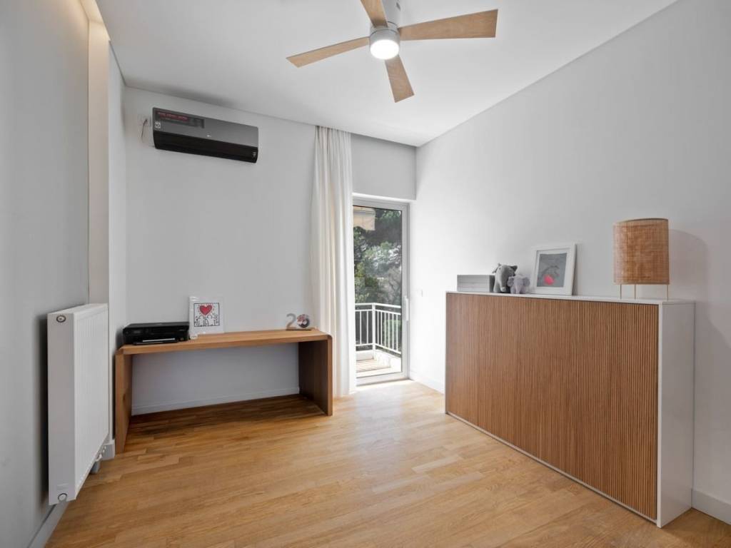 For sale, fully renovated and bright 99 sq.m. second-floor apartment in a prime location in Kifisia. The apartment is airy and features a spacious living and dining area with abundant natural light, seamlessly connected to the kitchen, which is equipped with Corian countertops and fully built-in appliances. It comprises 2 comfortable bedrooms with direct access to balconies, 1 modern bathroom, and a guest WC. The balconies, with a total area of 28 sq.m., have also been completely renovated, providing generous outdoor space. The apartment was fully renovated in 2020, with a focus on quality and functionality, including new electrical and plumbing installations and contemporary minimal finishes. It offers autonomous gas heating, air conditioning (cooling/heating) in all rooms, high-standard thermal and acoustic insulation in floors, walls, and ceilings, as well as thermal insulation on the building facade. Additional features include a security entrance door, oak plank flooring with insulation, thermal break aluminum frames with triple-glass windows and screens, hidden lighting, and soft-close wardrobes and drawers. Appliances include a washer-dryer, built-in dishwasher, built-in refrigerator and separate freezer, microwave oven, range hood, gas or electric boiler, and ceiling fans in the bedrooms with remote control. The apartment is also equipped with a full security system with keypads, motion sensors, and window/door detectors, as well as a private 4.5 sq.m. storage room on the ground floor of the building’s uncovered area. An ideal apartment in a prime location, perfectly suited for the most demanding preferences. Location: Kifisia is one of the most famous suburbs of northern Athens, a quiet, green oasis and also a commercial hub, just 12 kilometers from the city center. Unique Features: Kifisia, which hosted affluent Athenian families in the postwar period, has preserved its old charm and prestige while remaining one of the most sought-after addresses. A refreshingly lush area with many parks, large public squares, an upscale open-air shopping district with haute couture labels and international brands, banks, refined restaurants, trendy bars, sports clubs and gyms. It is close to most international schools and attracts many foreign residents. Its cosmopolitan character is reflected in the sophisticated supermarkets and specialty food stores that abound in the area. Two of Greece’s largest shopping malls are only a 5-minute drive away. Accessibility: Kifisia is easily accessible with frequent train and bus services to central Athens. The international airport is 45 minutes away by car via Attiki Odos. Investment Potential: Kifisia has always been attractive to real estate investors, so property prices here will always offer a good return on investment.
