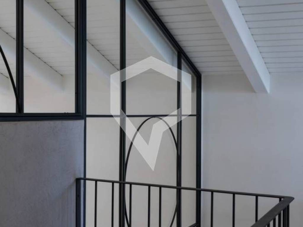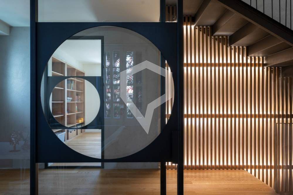 The property features a contemporary aesthetic combining industrial and classic design, independent heating with a heat pump, aluminum window frames with double-pane glass and screens, an elevator, and a private garden.