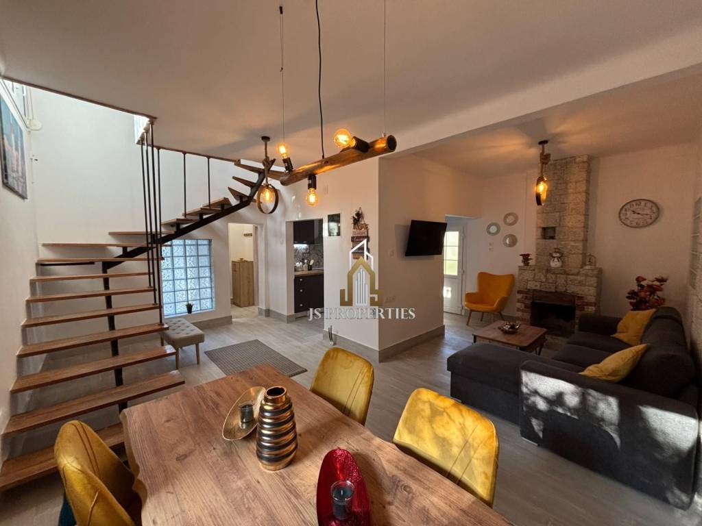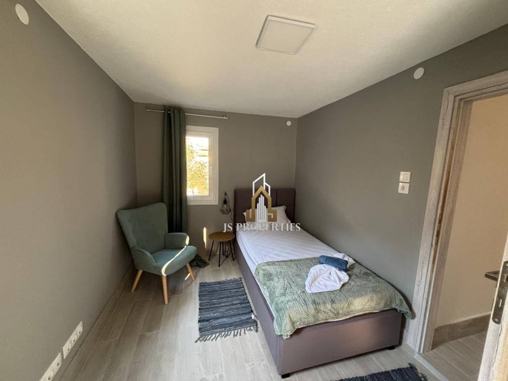 Perea, Agia Triada Luxury Furnished Detached House of total area 145sqm on 2 levels on a plot of 500sqm with private garden, several parking spaces and unlimited views Consists of an open plan living room, dining room, kitchen, 4 spacious bedrooms, bathroom and wc Built in 1980, complete renovation 2025, double glazing, aluminum frames, autonomous underfloor heating (oil), aluminum frames, adjacent glazing, air conditioning, solar water heater, storage room, fireplace, quiet area and 30 minutes by car from the sea. Price 385,000€ Property code: 112 For any information contact us