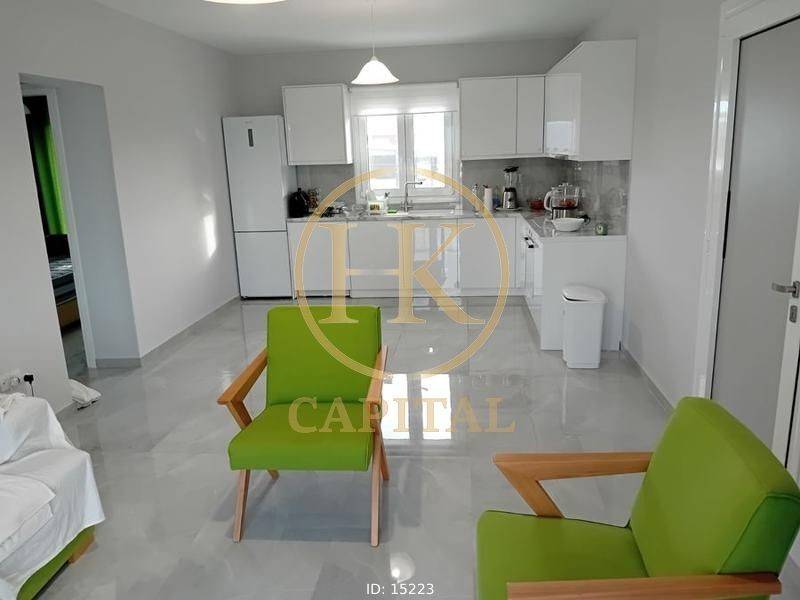 AEGINA, Chora (Faneromeni) – Newly Built 70 sq.m. Apartment with Sea View | Luxury Construction In Aegina, in the area of Faneromeni, in a prime location close to schools, sports facilities, and supermarkets, and just 600 meters from Panagitsa beach, a newly built first-floor apartment of 70 sq.m. (construction year 2025) is available for sale. The property is set on a 1,032 sq.m. plot and offers exclusive use of a 516 sq.m. garden, along with a private entrance, ensuring a high level of privacy and autonomy. It consists of 2 bedrooms, a living room, kitchen, and bathroom, and is offered fully furnished and equipped. The construction is of high standards (luxury), with Energy Class A+, ensuring low energy consumption. Additional features include autonomous heating via fan coil system (air-to-air heat pump), solar water heater, double-glazed windows, security door, and tiled flooring. The apartment is bright, front-facing, with an east-southeast orientation. The property enjoys unique, unobstructed sea and sunset views, making it an ideal choice for private residence or investment use. A modern residence with the feel of an independent home, in one of Aegina’s most desirable locations.