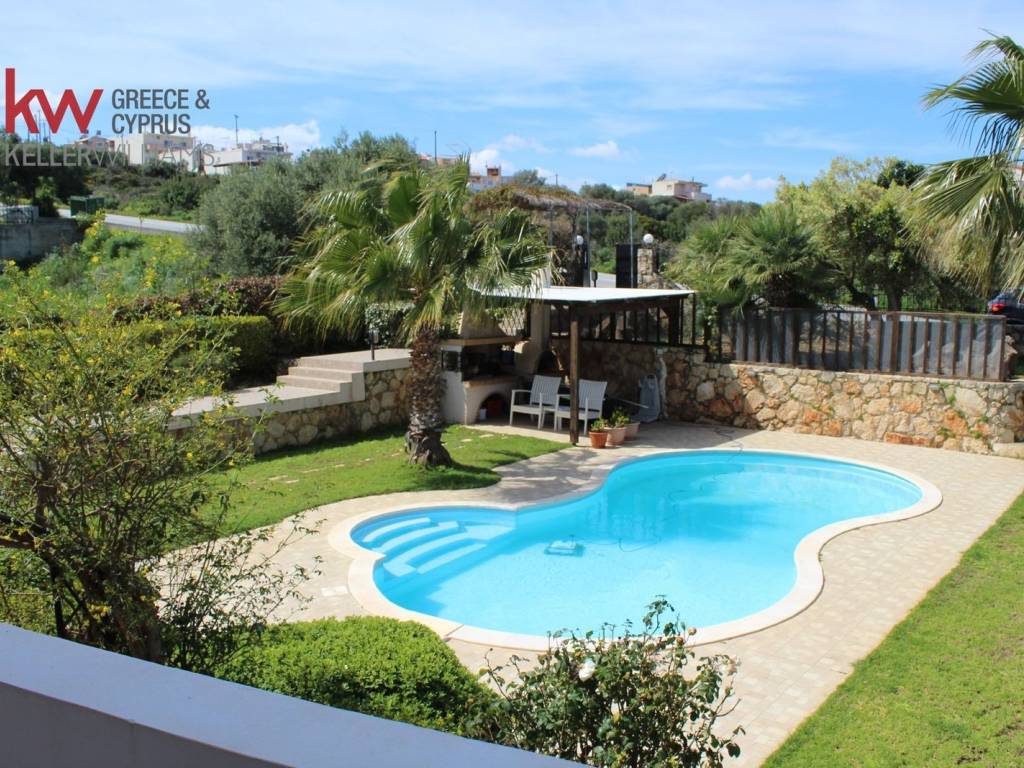 An outstanding first-floor apartment is available for sale in the highly sought-after and rapidly developing area of Akrotiri, specifically in Kounoupidiana, Chania, on Agiou Onoufriou Street. This property combines quality construction, comfort, privacy, and spacious outdoor areas, making it an ideal choice for a permanent residence, a holiday home, or a high-potential investment. The apartment has a net internal area of 193.80 sq.m. and is situated on a 1,296.70 sq.m. plot, offering exclusive use of a large private garden of 563.58 sq.m. The outdoor area is a true highlight of the property, featuring a private swimming pool of 34.23 sq.m. and a specially designed BBQ area of 12.93 sq.m., perfect for relaxation, entertaining guests, and enjoying the Mediterranean lifestyle. The interior layout is spacious and functional. It consists of a large open-plan living and dining area, a separate kitchen, four comfortable bedrooms, two bathrooms, and an internal storage room. The property is bright, airy, and dual-aspect, ensuring excellent natural light and ventilation throughout the day. The building permit was issued in 2001, and the property was completed in 2003. The apartment is in excellent condition and includes autonomous oil heating, air conditioning, aluminum window frames with double glazing, insect screens, and tile flooring. Additionally, there is an external garden storage room of 2.25 sq.m. Thanks to its location and features, this property represents an excellent opportunity for private residence, a holiday home, or investment through short-term rental. Asking Price: €480,000 Keller Williams Cretan Properties Prime Phone: +30 6970325551 Email: mkalantzis@kwgreece.gr