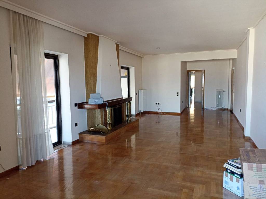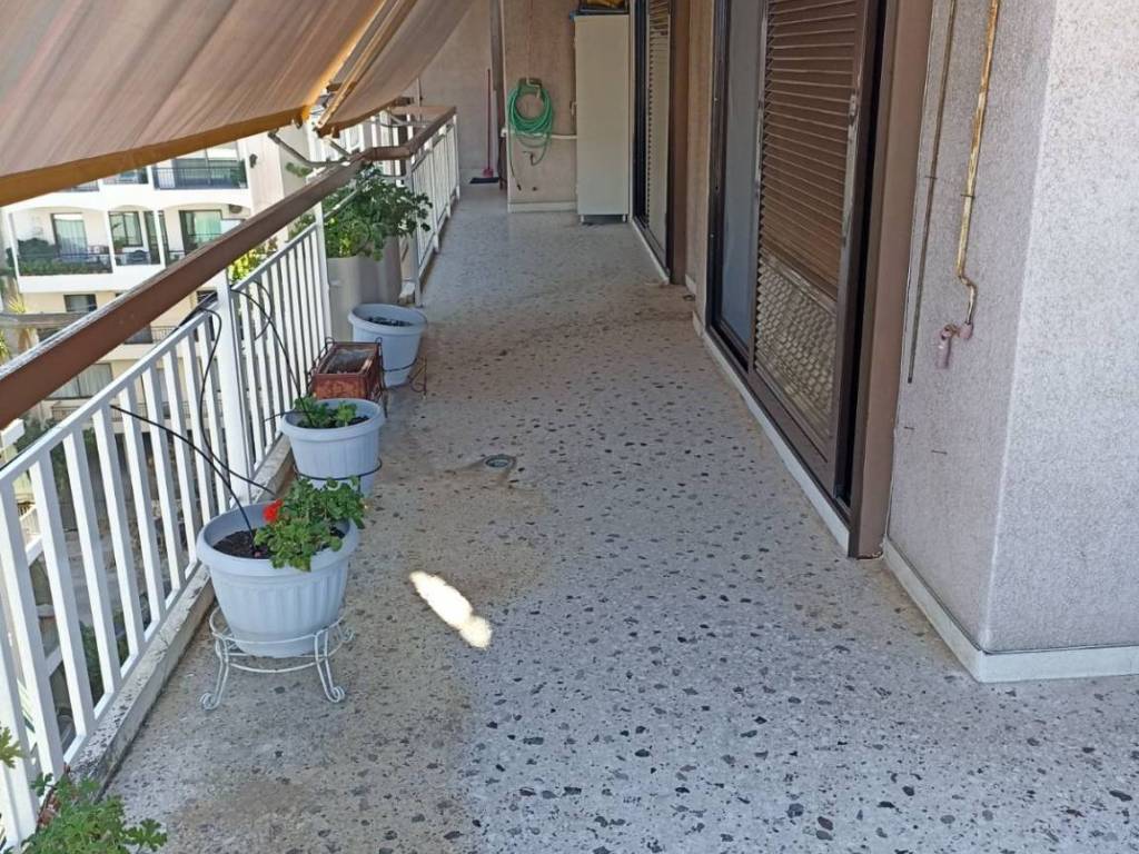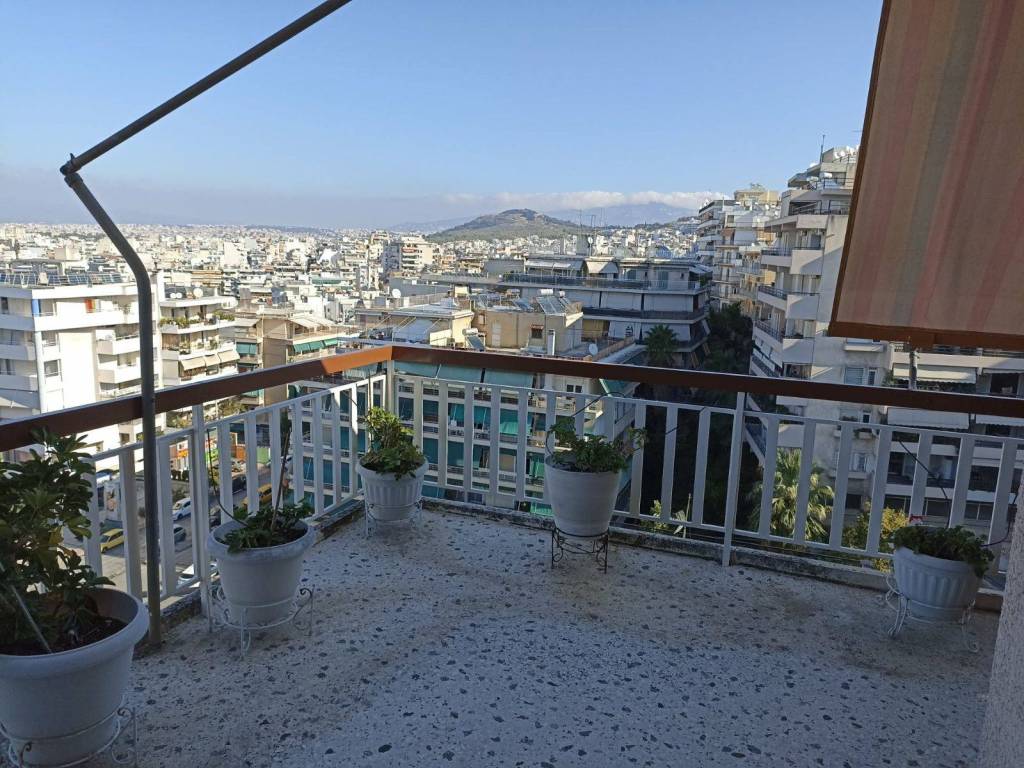 7ος διαμέρισμα 132τμ. με μεγάλες περιμετρικές βεράντες και απεριόριστη θέα. Το διαμέρισμα διαθέτει 3 υπνοδωματια, δύο μπάνια , μεγάλη ανεξάρτητη κουζίνα με ξύλινα ντουλάπια και πολύ μεγάλο σαλονι-τραπεζαρια που καταλήγει σε χώρο που απομονώνεται και μπορεί να χρησιμοποιηθει σαν γραφείο ή επιπλέον υπνοδωμάτιο, με ξεχωριστή εισοδο. Το διαμέρισμα έχει δρύινο παρκέ σε όλα τα δωμάτια και το σαλόνι, μεγάλες ντουλάπες και επιπλέον αποθηκευτικούς χώρους . Έχει αυτόνομη θέρμανση με πετρέλαιο ,τζάκι καθώς και τρία aircondition. Έχει καινούργια κουφώματα αλουμινίου με διπλά τζάμια , συναγερμό, ηλιακό θερμοσίφωνα, πόρτες ασφαλείας και στις δύο εισοδους και τέντες περιμετρικά σε όλη την έκταση του διαμερίσματος. Διαθέτει μια θέση πάρκινγκ σε ανοιχτή πυλωτη.