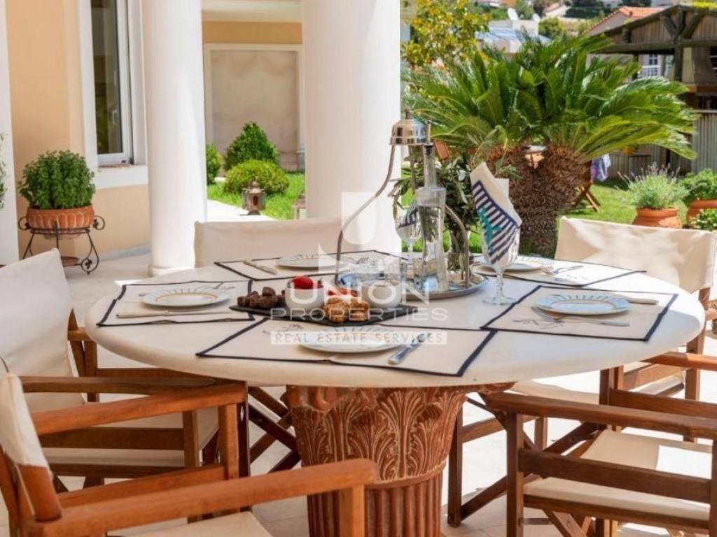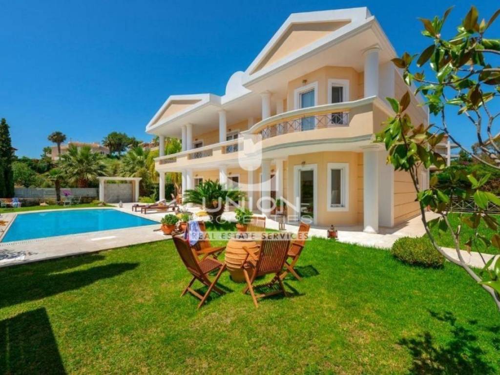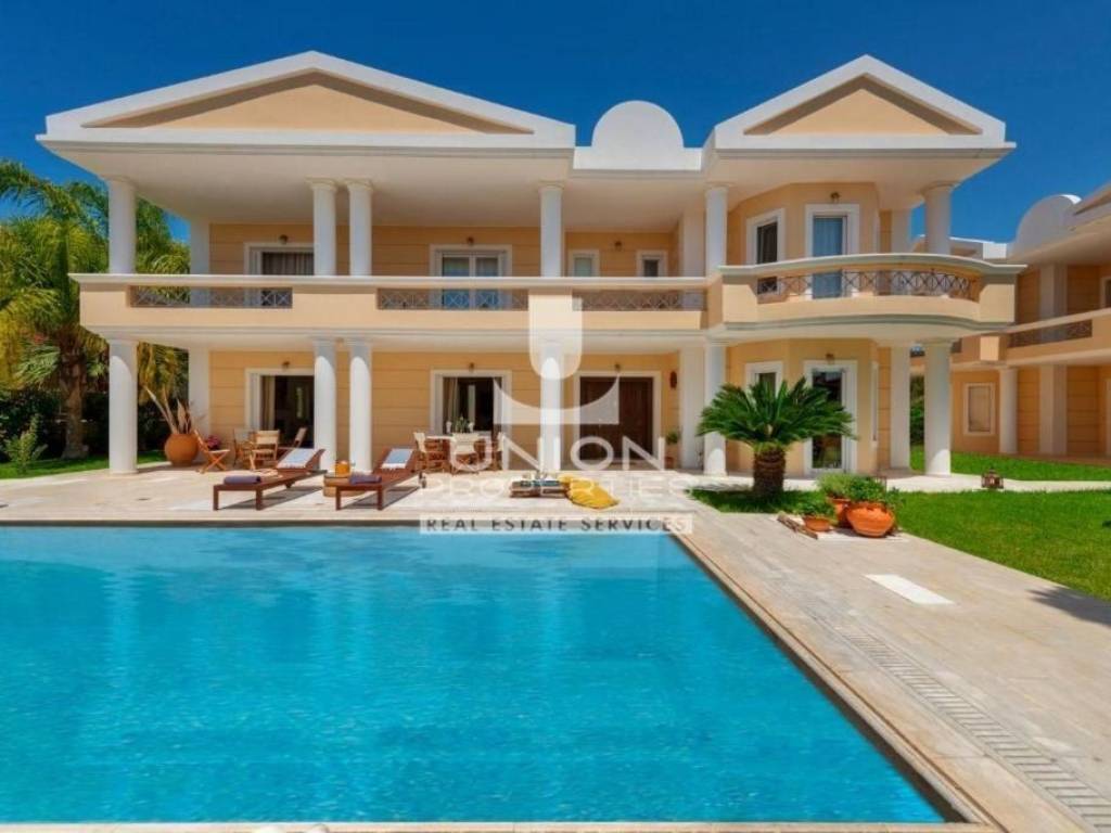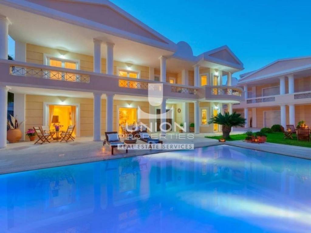 Anavyssos, Agios Nikolaos, Detached house For Sale, 820 sq.m., In Plot 1480 sq.m., Property Status: Very Good, Floor: Ground floor, 3 Level(s), 8 Bedrooms (8 Master), 2 Kitchen(s), 8 Bathroom(s), 2 WC, Heating: Autonomous - Fan Coil, View: Open Skyline + Sea View, Building Year: 2009, Energy Certificate: C, 4 parking(s), Floor type: Wooden floors + Marble, Features: Storage room, Fireplace (4), Playroom, Internal Staircase, Balconies, BBQ, Luxury, Airy, AirConditioning, Solar water system, Boiler, Swimming pool, Back yard (Garden), Price: 1.800.000€ - The location of the property on the map is indicative. - UNION PROPERTIES 2108970044 - 6949613181, https://www.union-properties.gr/, email: south@union-properties.gr