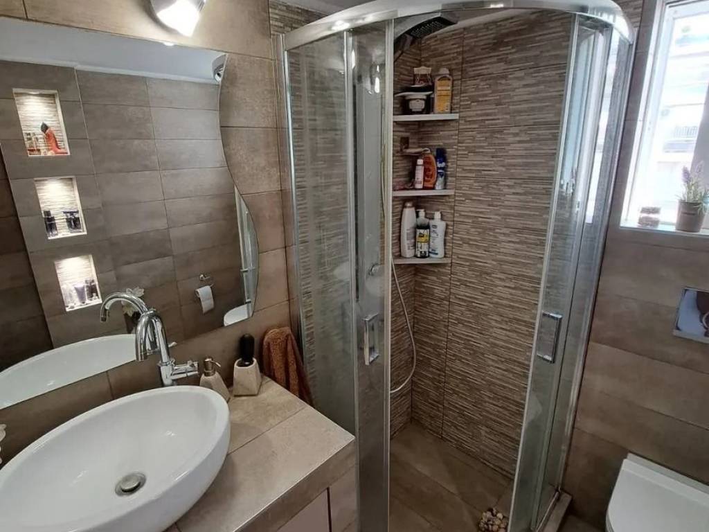 Discover a truly exceptional apartment that perfectly combines comfort, quality construction, and a prime location — an outstanding opportunity for those seeking the ideal home or a smart investment! This bright and well-maintained 4th-floor apartment (1st penthouse level) spans 82 sq.m. and stands out for its functional layout and refined aesthetics. It features two spacious bedrooms with ample storage, ideal for a family or for those needing extra space for a home office or guest room. The kitchen area is thoughtfully designed, fitted with solid beech wood cabinets that offer durability and timeless elegance. The main bathroom has been fully renovated, and there is also a separate WC, ensuring convenience for everyday living. One of the property’s highlights is the impressive, large veranda with a tiled roof, perfect for relaxing moments, entertaining guests, or enjoying outdoor dining in a peaceful setting. Double-glazed windows with insect screens, brand-new awnings, and a solar water heater enhance comfort and energy efficiency throughout the year. The apartment is equipped with autonomous oil heating and new radiators, providing efficient and immediate warmth. Additionally, the property includes a basement storage unit for extra space, as well as a private pilotis parking spot with an electric garage door — a valuable asset for everyday convenience. Located in a quiet, family-friendly neighborhood, the property is close to a square, schools of all levels (kindergarten, nursery, junior high, and high school), as well as public transport options including bus stops and metro access. This makes it an excellent choice for both owner-occupation and investment purposes. A property that truly combines quality, location, and practicality — ready to meet every modern need. Don’t miss the opportunity to make it yours!
