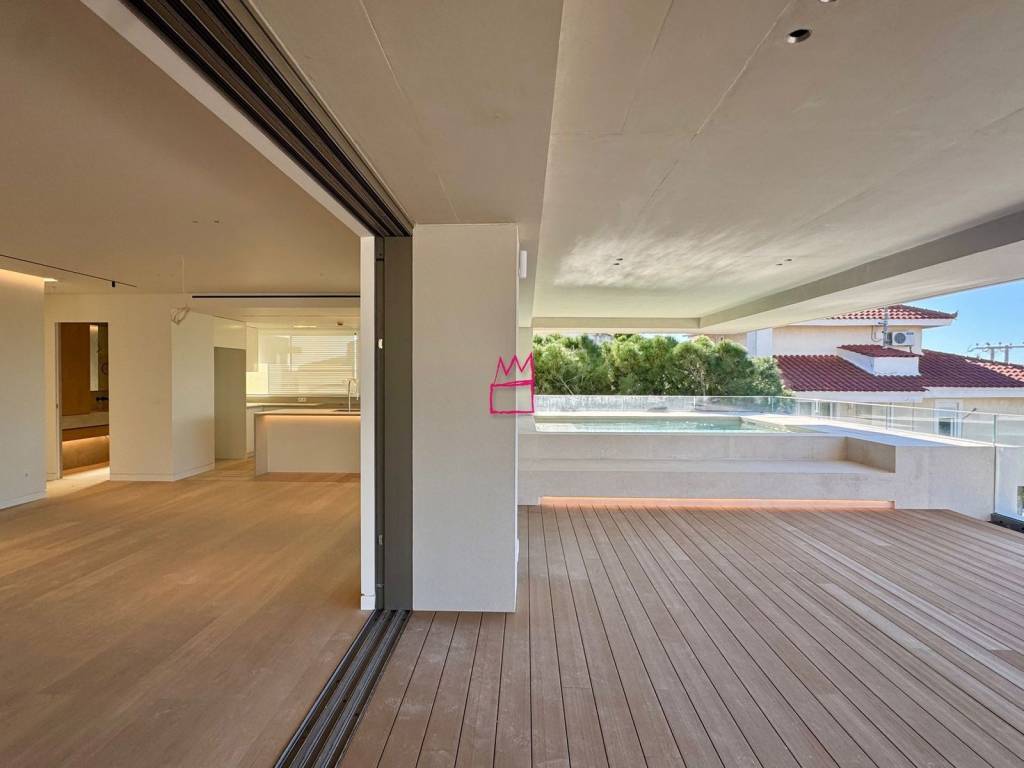 VOULA - DIKIGORIKA, Single Floor Apartment, Rental, 150 sq.m Newly built Minimal Floor Apartment in Voula with an open plan and private pool. The property features large verandas and plenty of natural light, three bedrooms (one master with private bathroom). It also has (2) underground parking spaces, one of which has an electric car charging infrastructure, storage room and modern construction specifications. Modern architecture, high quality materials and an ideal choice for comfortable and luxurious living. Energy class: A. property ID: 48270, www.nova-terra.gr