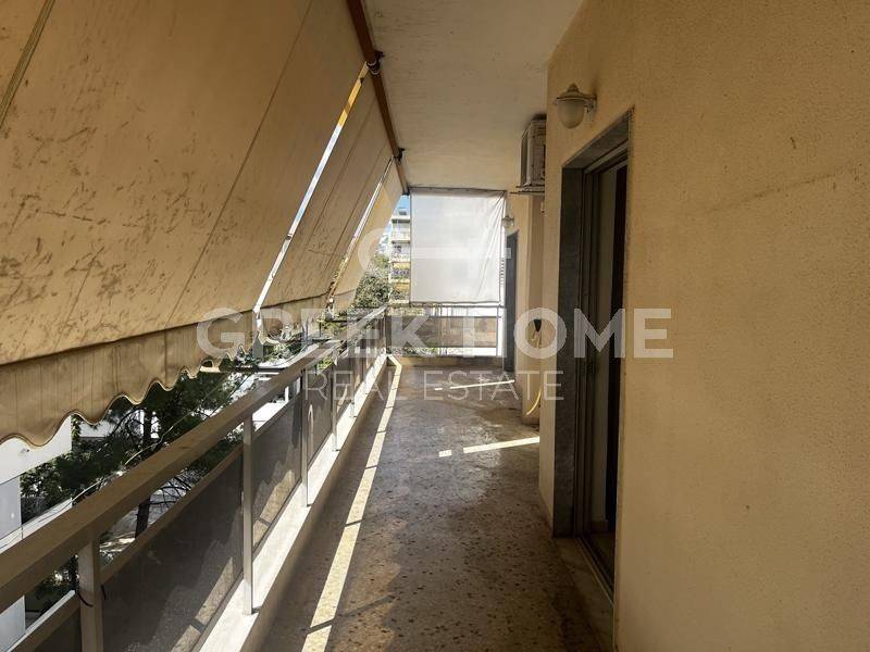 Marousi, Neo Terma - Apartment 60sqm bedrooms 2, 4th, good condition, year built 1975, energy class D, living room, hall, kitchen, bathroom, heating type: central (natural gas), air condition, quiet, luminous, corner, unobstructed view view, frontage, solar heater, balconies, large balconies, tents, elevator, loft storage, aluminum frames, wood & marble floors, separate kitchen, secure door, video doorbell, east-southern orientation, price is negotiable, close to metro/train (up to 200m), close to market (up to 100m), close to park (up to 100m).