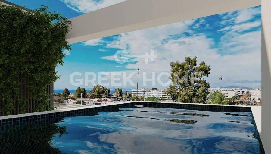 Glyfada - Full floor Maisonette 158sqm plot 600sqm, bedrooms 3, levels 2, 2nd (100sqm) - 3rd (58sqm), under construction, year built 2026, energy class A++, living room, hall, kitchen, 2 bathrooms, wc, heating type: autonomous (heat pump), air condition, parking covered,2, quiet, dual aspect apartment, luminous, corner, sea view, frontage, painted, storage space 13sqm, solar heater, external thermal insulation, fireplace, balconies, large balconies, elevator, loft storage, garden, aluminum frames, double glazed windows, door screen, wood & tile floors, secure door, video doorbell, luxurious, under floor heating, private pool, internal staircase, satellite, internet, pets allowed, close to park (up to 1000m), close to sea (up to 1000m).