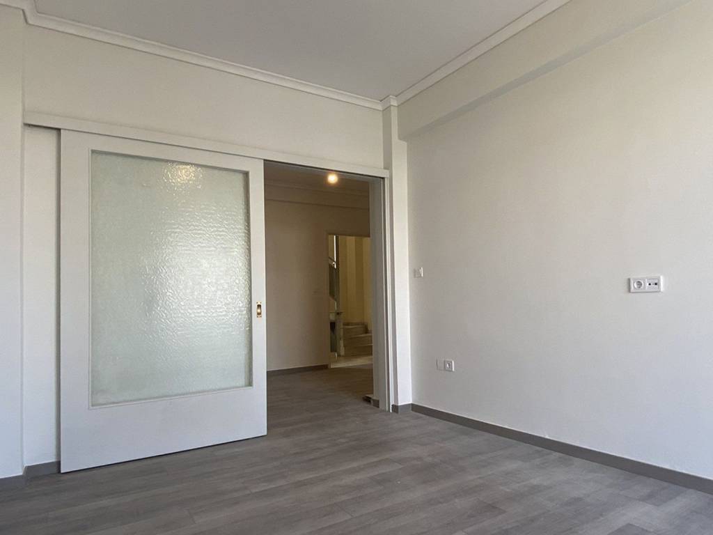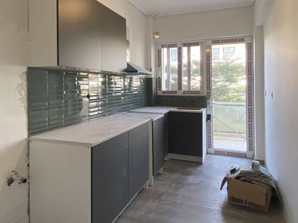 This renovated apartment is located on the first floor of a residential building in Argyroupoli, directly opposite the metro station, offering excellent connectivity to the center of Athens and the southern suburbs. The residence offers a total interior area of 55 sqm and features a functional layout including one bedroom, one bathroom, a living room and a separate kitchen. The living area can be converted into an additional room through a sliding door, providing flexibility depending on the needs of the tenant. The apartment was fully renovated in 2026, including the bathroom and kitchen, and is in excellent condition. It is equipped with two new LG inverter air conditioning units (12,000 BTU each), covering heating and cooling needs. Additional features include aluminum window frames with a combination of single and double glazing, laminate flooring, elevator access and open urban views. The property is suitable for both residential use and professional use, thanks to its strategic location.