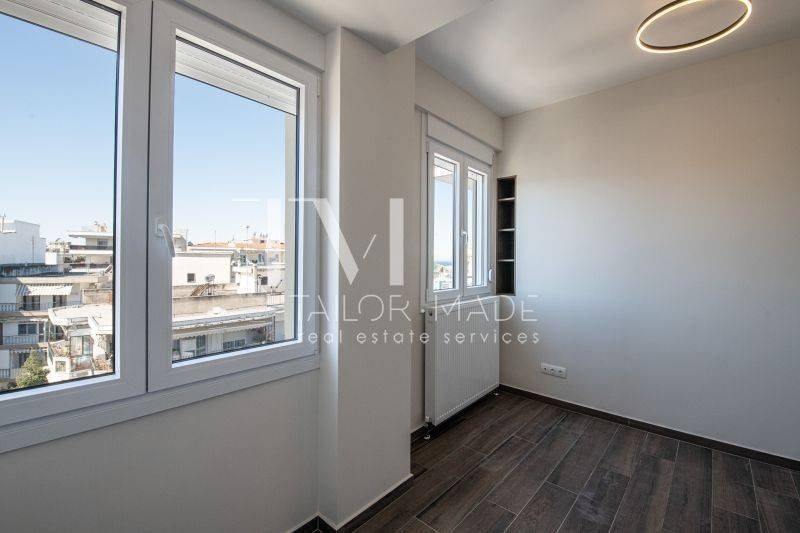 Located on the sixth floor of a well-maintained building from 1998, near Adrianoupoleos Street, this fully renovated 130 sq.m. apartment (117 sq.m. net) is now available for sale. The recent renovation has introduced a modern aesthetic, focusing on creating bright and comfortable living spaces.
