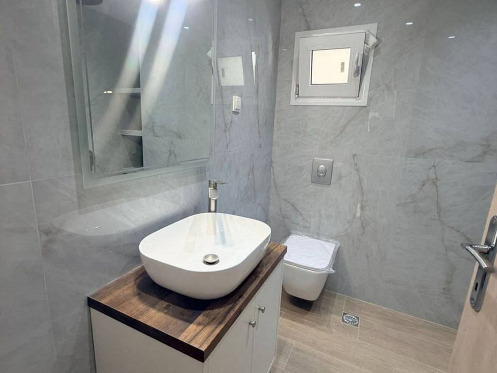 Heraklion, Crete, Therissos: Renovated three-room apartment for rent, 70 sq.m. on the 1st floor. It consists of 2 bedrooms, living room-kitchen, bathroom and balcony. It has a security door, tiled floors, aluminum frames with double glazing and screens, air conditioning, solar water heater and independent PPC clock..Pets accepted Price €750 | Property Code: #VS7405