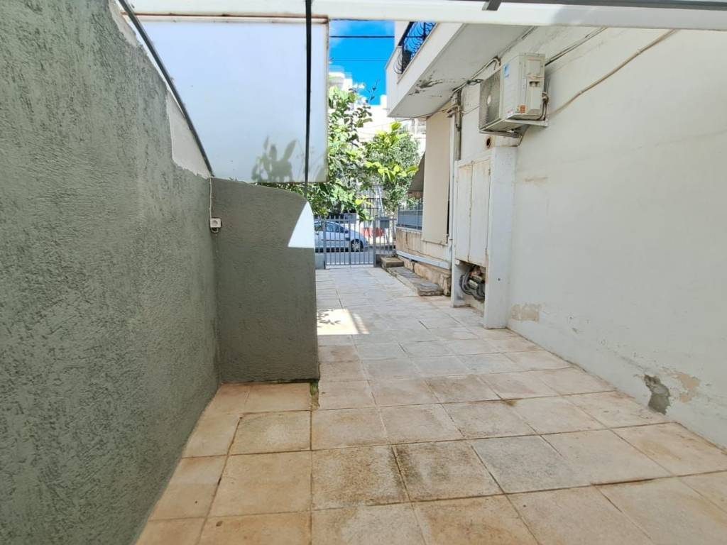 In a prime and highly convenient location in Elliniko, just 250 metres from Elliniko metro station and in the heart of the central market area, a fully furnished and fully equipped garden-level apartment is available for rent within a three-storey building. The property, 42 m2, comprises a living room with an open-plan kitchen and an energy-efficient pellet fireplace, one bedroom, and a bathroom equipped with a wall-mounted heater. There are also two air conditioning units, installed in both the living room and the bedroom. The apartment features a solar water heater and comes fully equipped with electrical appliances and household items, making it immediately ready for occupancy. It is fitted with electric shutters and insect screens on all openings. From the bedroom, there is access to a covered and enclosed veranda, suitable for laundry drying and additional storage. The tenant may also make use of the front courtyard, where outdoor seating such as a table and chairs can be placed, offering a pleasant outdoor living space. Minimum lease duration: 1 year