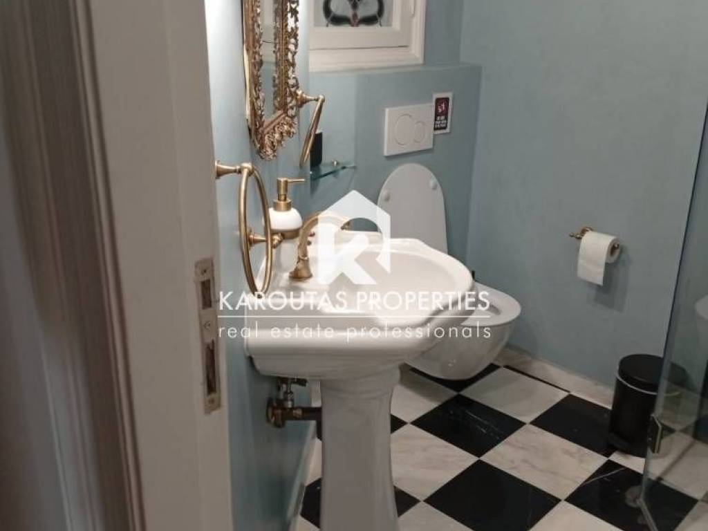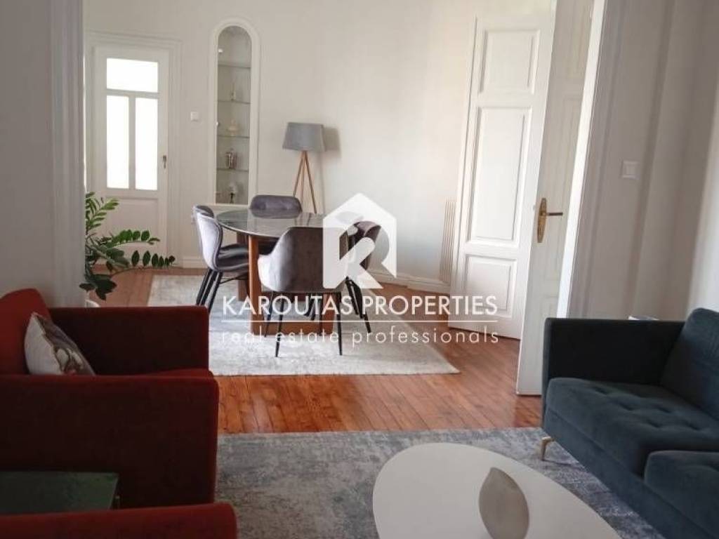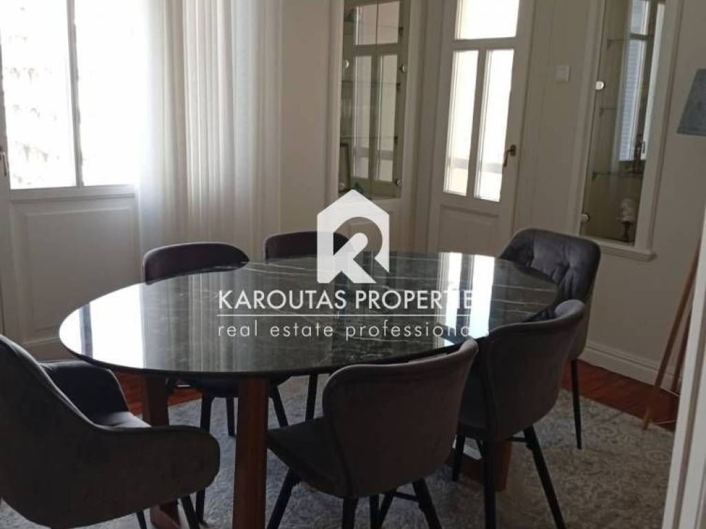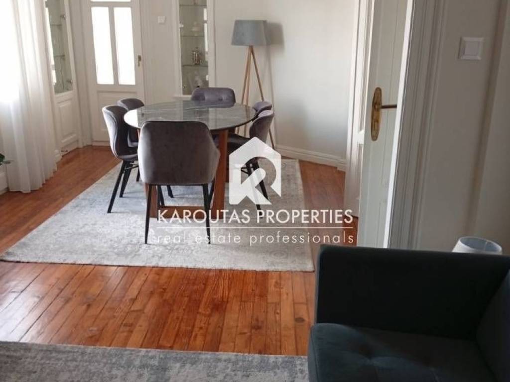 For rent: an exceptional 108 sq.m. apartment in the heart of Thessaloniki, located in a preserved building of high aesthetic value dating back to 1929, combining classic architectural character with modern comforts. It is situated on the 4th floor of a five-story building with an elevator, front-facing, very bright, and offering a pleasant view.