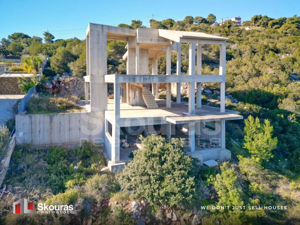 Located in one of the most privileged and rapidly developing areas of Corinthia, in Amoni, Pefkali (Solygeia), an impressive unfinished three-level detached house is offered for sale, with a total surface of 337.54 sq.m., set on a 1,060 sq.m. plot, enjoying unobstructed panoramic views over the Saronic Gulf, Salamina Island, the Corinth Canal, and the Attica coastline. The property is situated in an excellent location within the settlement, in a quiet and high-quality residential environment, just 2 km from the well-known beaches of Mikro and Megalo Amoni, which are distinguished for their crystal-clear and calm waters, making them ideal for family use. The residence is developed across three levels (ground floor, first, and second floor), with the architectural study providing for five bedrooms (including one master), three bathrooms, a spacious living room, and a kitchen. It also features an internal staircase, storage areas, two outdoor parking spaces, and a comfortable garden. The east orientation ensures abundant natural light throughout the day and a pleasant living atmosphere, while the dual-aspect layout enhances both ventilation and functionality. The property is currently at the construction stage (structural frame – concrete, built in 2010), offering the new owner the opportunity to complete and configure it entirely according to their personal needs and aesthetic preferences. In addition, there is a remaining building capacity of approximately 210 sq.m., allowing for the development of a second independent residence within the plot, significantly increasing its investment potential. There is also the option to construct a swimming pool. The location provides easy access to key points of interest, being just 2 km from the beach, 9 km from the nearest village, 33 km from Corinth, approximately 60–66 km from Nafplio, 45 km from the Ancient Theatre of Epidaurus, and 133 km from Athens International Airport. This property represents an excellent opportunity both for private use, as a permanent or holiday residence of high standards, and for investment purposes, such as the development of a tourist villa or residential complex, in an area with increasing demand and limited availability of quality properties. A rare opportunity to acquire a property with panoramic sea views and significant development potential in one of the most beautiful coastal areas of the Peloponnese. Skouras Real Estate #1 Greek Real Estate Agency in the Peloponnese 4 Offices: Nafplio | Kalamata | Corinth | Porto Heli 3000+ Properties | 18+ Years of Experience | Support in 5 Languages Marketing & Website – European Property Awards 2020 Marketing Techniques & Development – EPPA 2022 & 2024 Call Center: +30 27520-29529 Mobile: +30 6998684457 Email: vbo@skourasrealestate.gr Property Manager: Vassilios Mpokos Over 3,000 properties available at: www.skourasrealestate.gr Note: The property information is based on data provided by the owners. Skouras Real Estate bears no responsibility for any inaccuracies. ID card or passport required for property visits. Map locations are approximate.