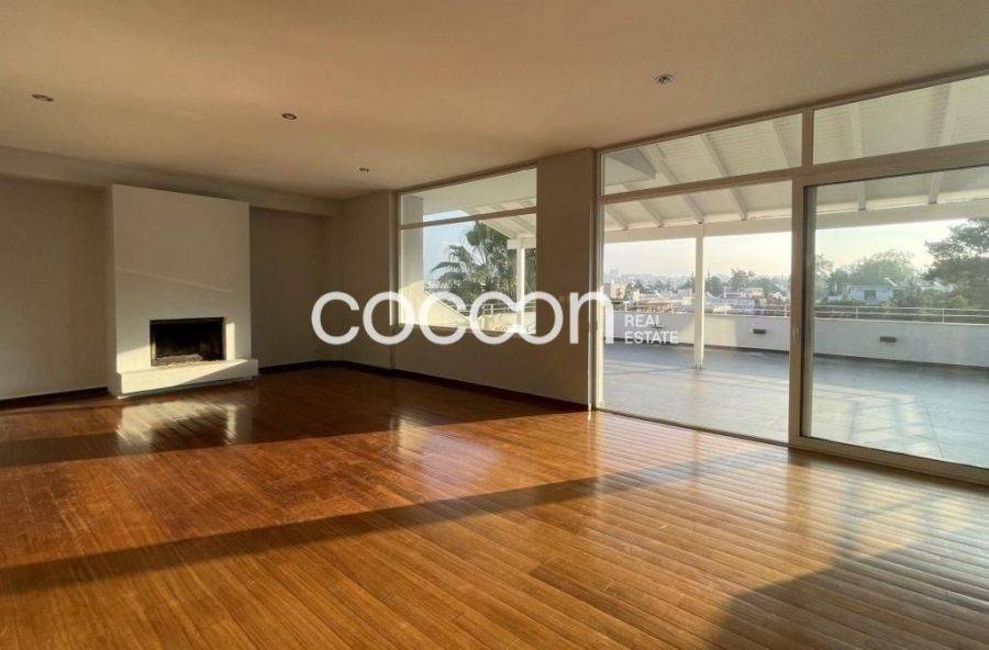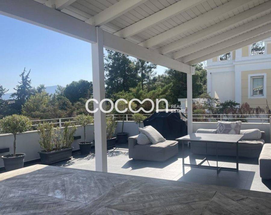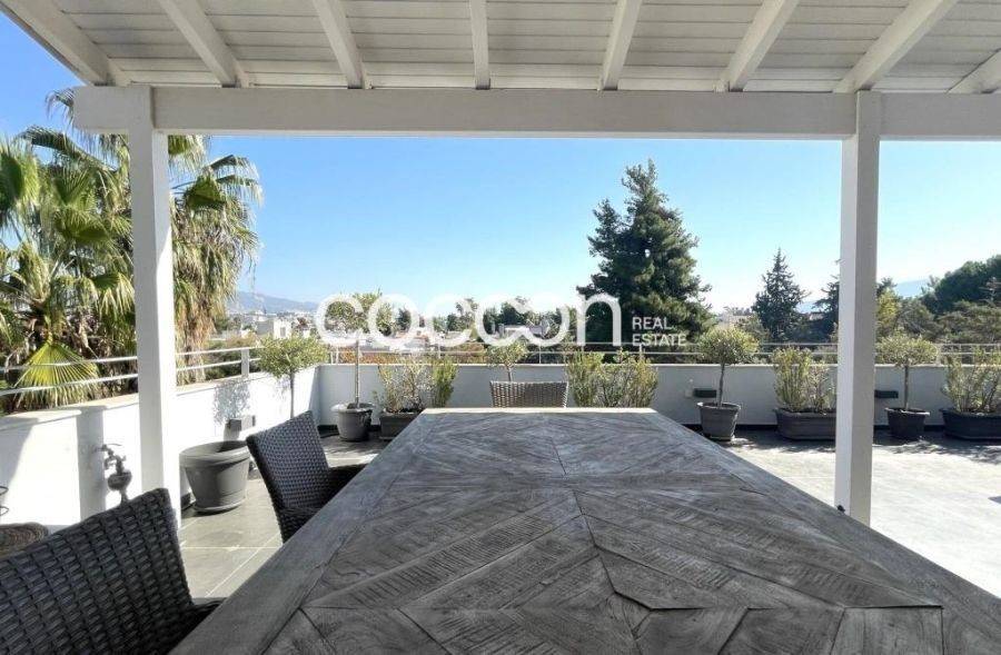 Duplex διαμέρισμα 2ου-3ου ορόφου, 257 τ.μ. συνολικά. Συνοδεύεται από αποθήκη 17 τ.μ. και 2 άνετες υπόγειες θέσεις στάθμευσης. Η κατοικία είναι κατασκευής 1993 και το 2002 έγινε ολική ανακαίνιση σε όλους τους χώρους. Έκτοτε έχουν γίνει σταδιακά πολλές μικρές ανακαινίσεις-βελτιώσεις. Αναπτύσσεται σε δύο επίπεδα ως εξής: Ασανσέρ μας οδηγεί κατευθείαν στο 2ο όροφο ο οποίος αποτελείται από πολύ ευρύχωρο χώρο υποδοχής με τζάκι, τραπεζαρία, πολύ ευρύχωρη κουζίνα και 1 wc επισκεπτών. Ο 3ος όροφος διαθέτει 3 υπνοδωμάτια εκ των οποίων το ένα είναι master με en suite μπάνιο και walk in closet ενώ τα άλλα δυο εξυπηρετούνται από ακόμη μπάνιο. Όλα τα δωμάτια βγάζουν σε ευρύχωρες βεράντες. Έξω από το master υπνοδωμάτιο υπάρχει ένας χώρος με επικλινή στέγη που μπορεί να λειτουργήσει σαν family room ή playroom. Ο 2ος όροφος βγάζει σε πολύ μεγάλη βεράντα με ανεμπόδιστη θέα. Λοιπά χαρακτηριστικά: -Αυτόνομη θέρμανση με φυσικό αέριο -Κλιματισμός -Ηλιακός -Boiler -Κουφώματα αλουμινίου -Διπλά τζάμια -Ξύλινα δάπεδα -Playroom -Συναγερμός -Αποθήκη (17 τ.μ.) -2 θέσεις στάθμευσης