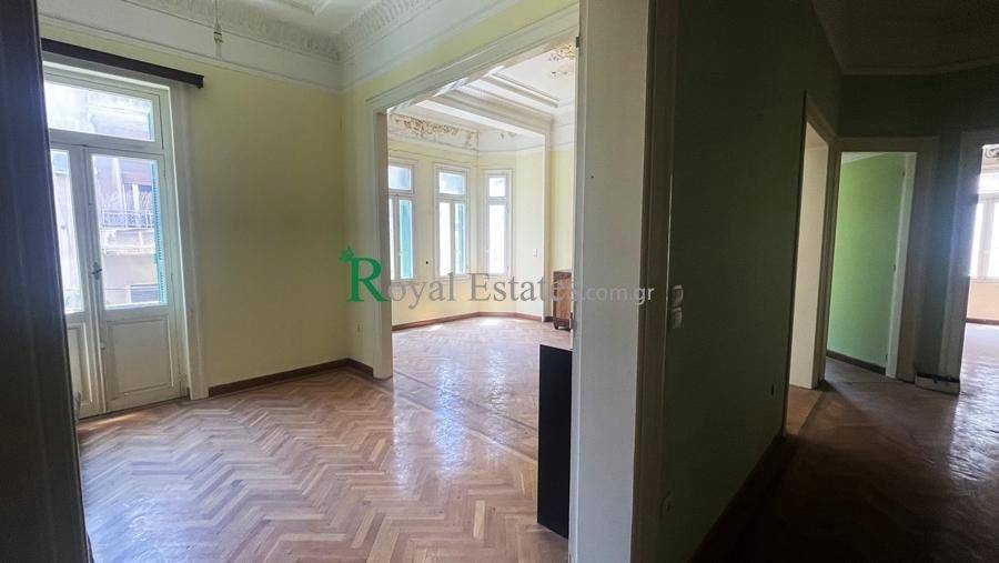 Rare Neoclassical Floor Apartment, Private Entrance, Kypseli near Fokionos Negri Located in one of Athens’ most historic and vibrant neighborhoods, just moments from the renowned Fokionos Negri promenade in Kypseli, this remarkable 240 sq.m. neoclassical floor apartment occupies the second floor of a corner building dating back to 1930. The property stands out for its independent private entrance, corner position, and impressive architectural character. High ceilings, authentic herringbone wooden flooring, and large openings create a sense of elegance and timeless charm, reflecting the refined aesthetics of Athenian neoclassical architecture. The apartment is bright, dual-aspect and front-facing, offering generous spaces and excellent natural light throughout. While the property requires renovation, it provides an exceptional opportunity for complete redesign and transformation into a unique residence or prestigious professional space. Interior Layout Entrance hall Two spacious reception and living areas with balconies Separate kitchen area Office/study room Three bedrooms (two with balconies) Main bathroom Guest WC Key Features Private independent entrance with wooden staircase Impressive high ceilings Authentic high-quality herringbone wooden floors Wooden window frames Video intercom system Pre-installation for an individual natural gas boiler Cast-iron radiators This distinctive property offers multiple development possibilities, making it ideal for: A refined private residence Prestigious offices or professional headquarters Investment redevelopment project A rare neoclassical property with exceptional character and outstanding renovation potential, situated in one of Athens’ most lively and culturally rich districts. Contact us for further information or to schedule a viewing. The map pin does not indicate the exact location of the property but rather a point nearby. The property description is based on information provided by the owner or their representative. These property details are offered in good faith and do not form part of any contractual agreement. Royal Estates real estate agency accepts no responsibility for the accuracy of the information contained in this listing. The agency's fee, in the event of a sale of the property, is 2% (two percent) of the total actual value of the main contract, plus the applicable VAT (24%). In the case of a rental agreement, the agency's fee is equal to one month's rent, plus the applicable VAT (24%). When viewing properties, it is required by law (Law 4072/11.4.2012) to present an ID card and the tax identification number (TIN) of the prospective buyer. More properties can be found on our company website www.royalestates.com.gr Royal Estates. Real Estate Services. T: +30 210 6770 491, F: +30 210 6770 494. email : akinita@royalestates.com.gr. www.royalestates.com.gr