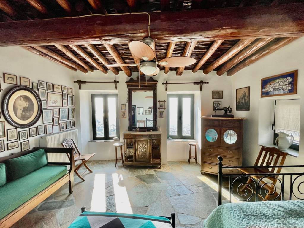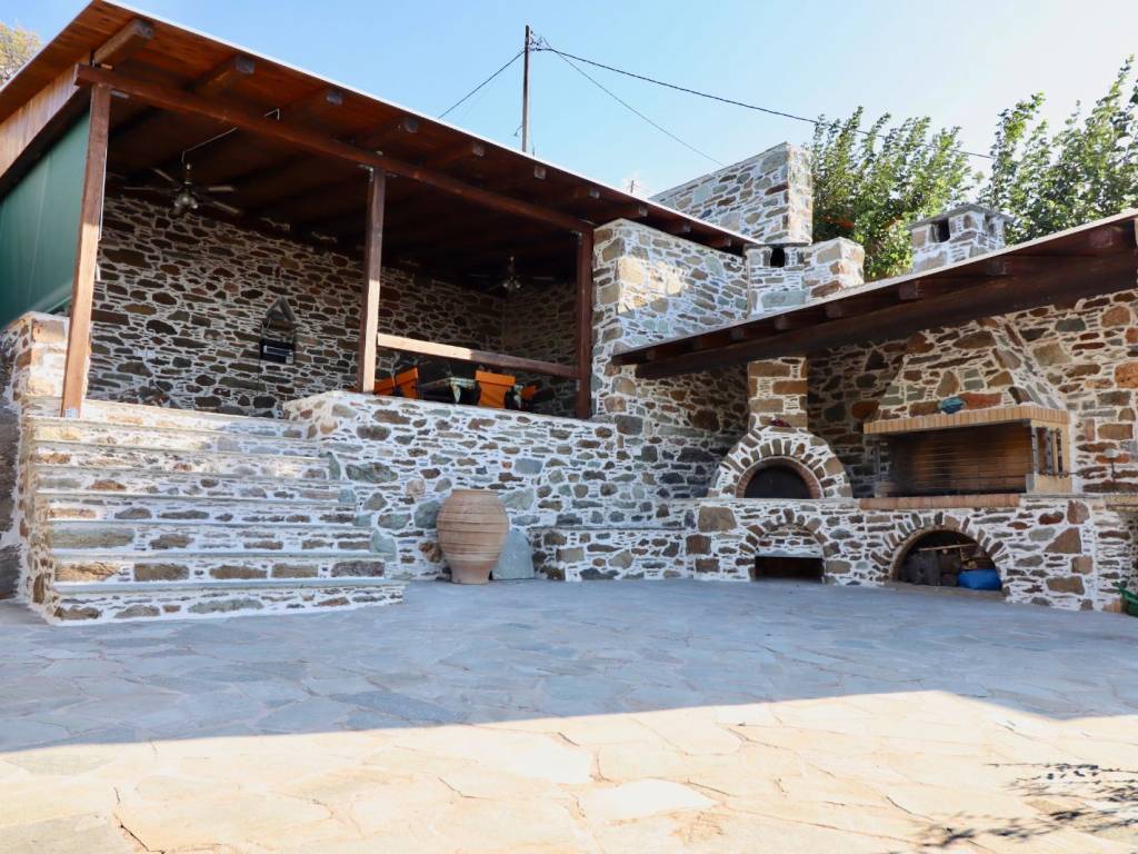 Karystos, Mekounida – Traditional mansion dating back to 1850, fully renovated and fully furnished. Built against the branches of a massive rock located at the entrance, offering a unique panoramic view of the entire Aegean Sea. The property has been continuously renovated up to the present day. It spans 150 sq.m. over two levels and features a stone-built exterior fence made of old stone with white jointing. It includes: • 2 main bedrooms, with the possibility to accommodate 2 additional people in the living room • 1 bathroom • Fully equipped kitchen • Tavern-style dining area The plot is 550 sq.m., featuring: • 1 pine tree • 1 loquat tree • 1 pomegranate tree • 2 mulberry trees providing excellent natural shade The rest of the outdoor area is fully paved with Karystos stone across 5 levels. Additional features: • Open parking for 2 cars • Central heating (radiators) • Custom-made traditional aluminum thermal-break windows with insect screens • Thick stone walls (1.2 m on the ground floor, 1 m on the upper floor and interior) • 100 sq.m. rooftop terrace with multiple insulation layers and panoramic views from Nea Makri to the summit of Mount Ochi • Covered pergola (45 sq.m.) for wind protection • BBQ and traditional wood-fired oven Outdoor furnishings include: • Marble table (2 m) • Stone table (1 m) • Wooden monastery-style table (2 m) The interior is fully equipped with antique furniture, artworks, stereo system, TV, electrical appliances, and complete household equipment. Very low property tax (ENFIA). For sale as seen: €400,000.