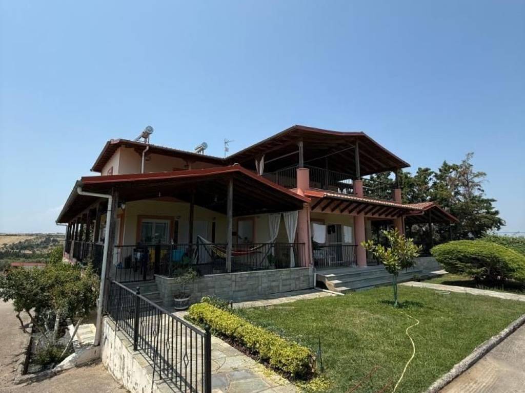 For sale in Ano Neoi Epivates Villa 640 sq.m. in an excellent location near the center of Neoi Epivates with unlimited mountain and sea views. It consists of 11 bedrooms, 3 living rooms, 5 bathrooms and 5 WCs, and is arranged on 3 levels. In addition, there are storage rooms, a garden and a terrace. Essentially, it consists of 3 separate houses (connected by internal doors) The 2 houses (right-left, are exactly the same in opposite directions of 180 sq m) Arranged on 3 levels—consisting of: -basement with an independent room with bathroom + storage -ground floor with a large living room + dining room + wc -1st floor-> 3 rooms, 1 of the bathrooms has its own, + 1 bathroom for the remaining 2 And the 3rd is the entire ground floor, around 280 sq m, where it looks back to the yard, and has an internal staircase and goes out to another apartment with a living room, bathroom and storage of 60 sq m They have autonomous heating with oil and air conditioning. It has aluminum frames with double glazing and tiled floors. Additional features of the property include electrical appliances, wardrobes and a solar water heater, 6 parking spaces, barbecue, and alarm The property has an unlimited view. The plot area is 7870 sq m