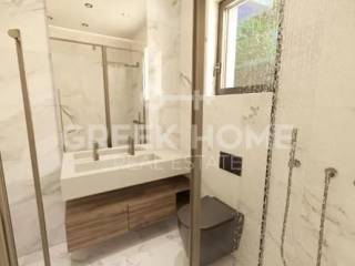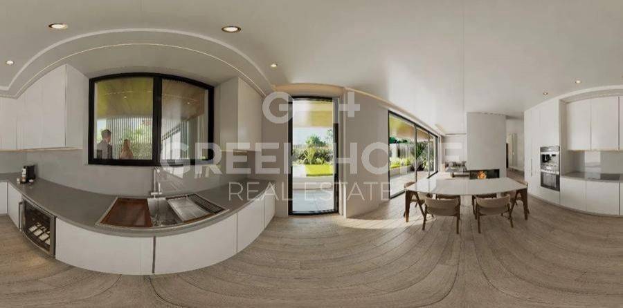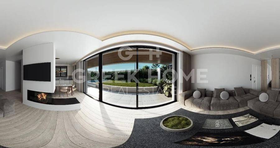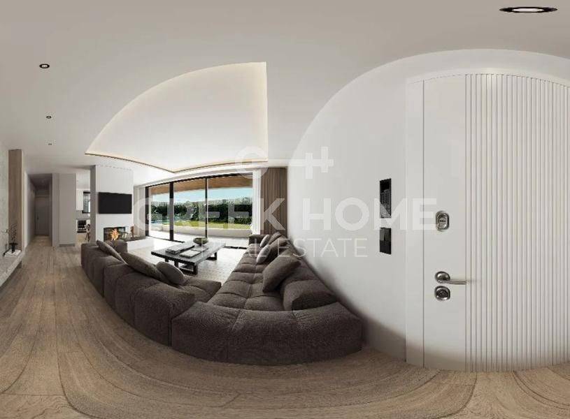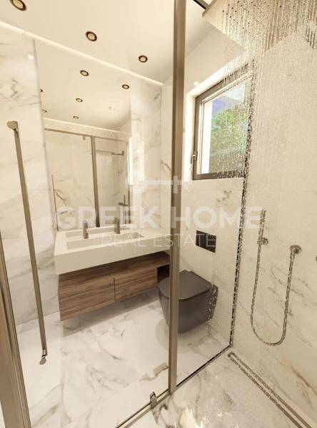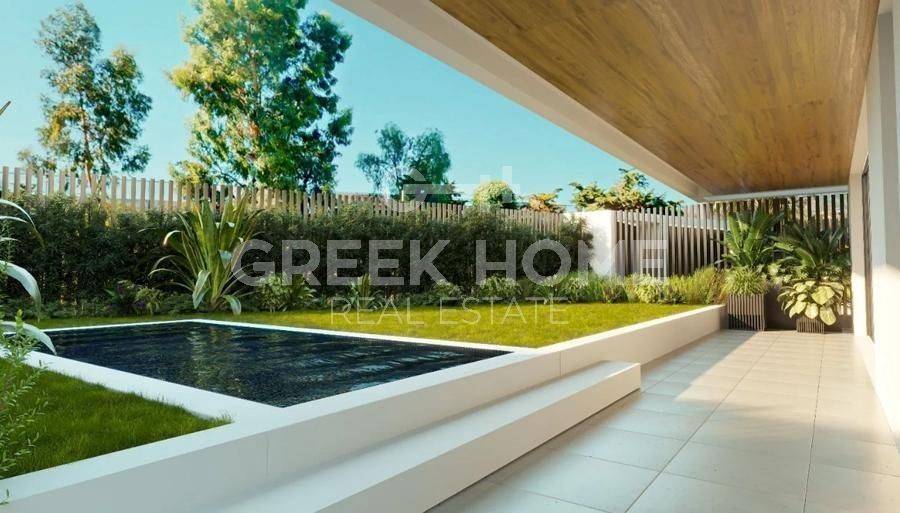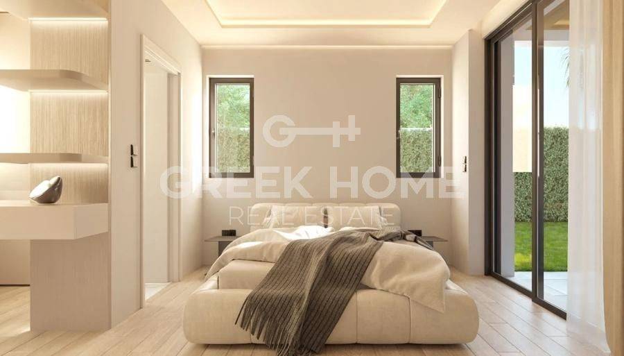 Glyfada - Apartment 121sqm plot 600sqm, bedrooms 3, ground floor, under construction, year built 2026, energy class A++, living room, kitchen, 2 bathrooms, heating type: autonomous (heat pump), air condition, parking covered,2, quiet, dual aspect apartment, luminous, corner, frontage, painted, storage space 13sqm, solar heater, external thermal insulation, fireplace, balconies, large balconies, elevator, loft storage, garden, aluminum frames, double glazed windows, door screen, wood & tile floors, secure door, video doorbell, luxurious, under floor heating, private pool, satellite, internet, pets allowed, close to sea (up to 1000m), close to park (up to 1000m).