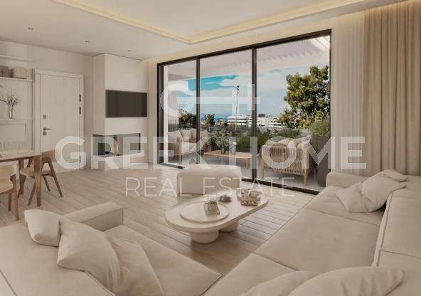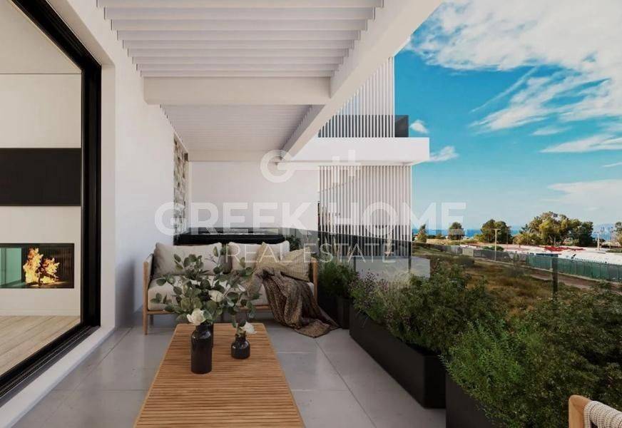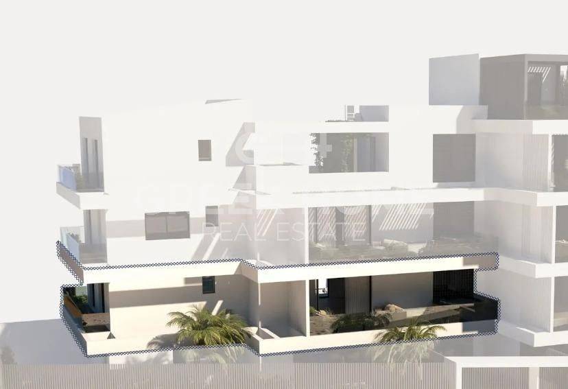 Glyfada - Apartment 100sqm plot 600sqm, bedrooms 2, 1st, under construction, year built 2026, energy class A++, living room, hall, kitchen, 2 bathrooms, heating type: autonomous (heat pump), air condition, parking covered,2, quiet, dual aspect apartment, luminous, corner, frontage, painted, electric roller shutters, storage space 13sqm, solar heater, boiler, external thermal insulation, fireplace, balconies, large balconies, elevator, loft storage, aluminum frames, double glazed windows, door screen, wood & tile floors, handicap ramp, secure door, video doorbell, luxurious, under floor heating, ev charger, satellite, internet, pets allowed, investment property, close to sea (up to 1000m), close to park (up to 1000m).
