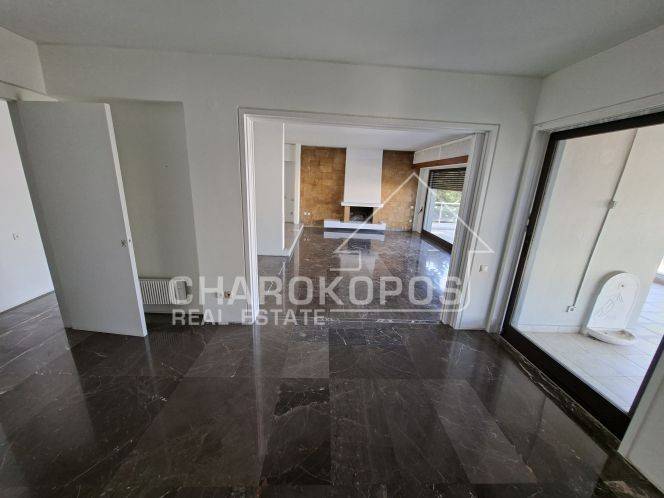 Apartment for rent 145 sq m. on the third floor in Filothei. It consists of reception areas, 3 bedrooms, office, kitchen, bathroom, WC, maid's room and storage room of 4.5 sq m. The bathroom and WC were renovated in 2005. It has independent heating with natural gas, 4 air conditioners and a fireplace. It also has a security door, wooden floors in the bedrooms and marble in the rest of the house, verandas with a view and access to it is by elevator. It is located near Drosopoulou Square and a stone pavilion. The spot on the map does not indicate the exact location of the property, but near it. The brokerage fee in case of rental is equal to the rent plus the legal VAT (24%). The presentation of the identity card and the VAT number is necessary for the indication of the property. On our website: https://www.charokopos.gr/ you can find more information and properties.