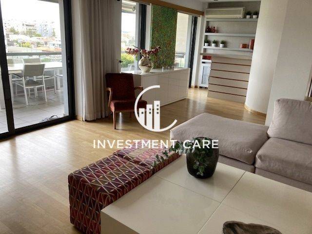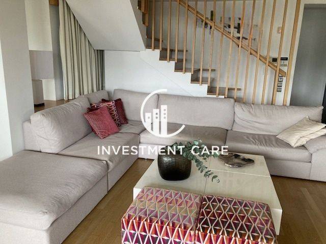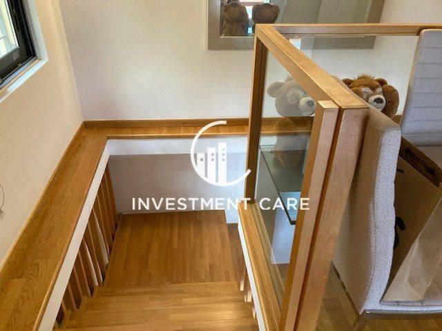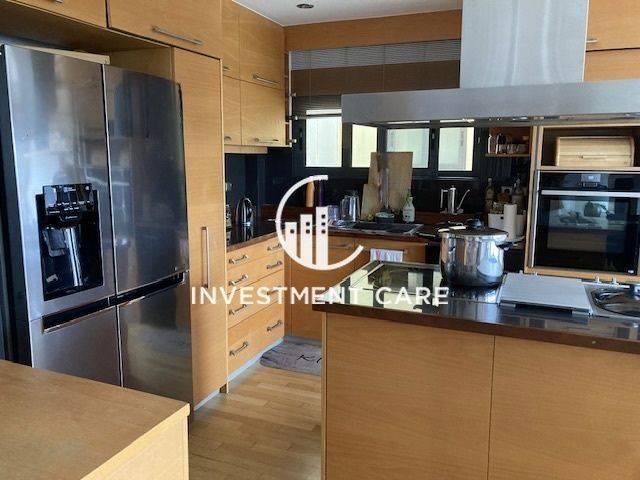 In a very nice location in Ano Chalandri (Tufa Chalandri), excellent 180sqm 4th and 5th floor penthouse, minimal aesthetics, very carefully built in 2004 with quality materials. It is developed on 2 levels, on the 4th floor it consists of a comfortable living room with a double-sided fireplace, with access to a large terrace with an unobstructed view. In the reception area there are built-in bookcases and a bar area, and it has spot lighting throughout the space. The kitchen is open plan with an island and built-in electrical appliances. Moving on, we find a very modern guest wc, 2 children's bedrooms, a bathroom and a laundry room. We go up to the 5th floor by a comfortable staircase, where we find a large master bedroom with an independent dressing room and a large en suite bathroom with 2 sinks, a bathtub with a jacuzzi, and a shower. On the first floor there is another large room which can be used as an office or children's room, which has many wardrobes. The property has oak floors throughout, autonomous heating with natural gas and a central triple energy system, has a Daikin boiler and air conditioning, electric shutters and awnings, alarm, armored door. In the basement there is a 13.87 sq m storage room as well as 2 comfortable parking spaces. The property was first occupied in 2007. It is leased until June 2026, has direct access to the metro, is located 8 minutes from the suburban and Attiki Odos. Price 820,000 €