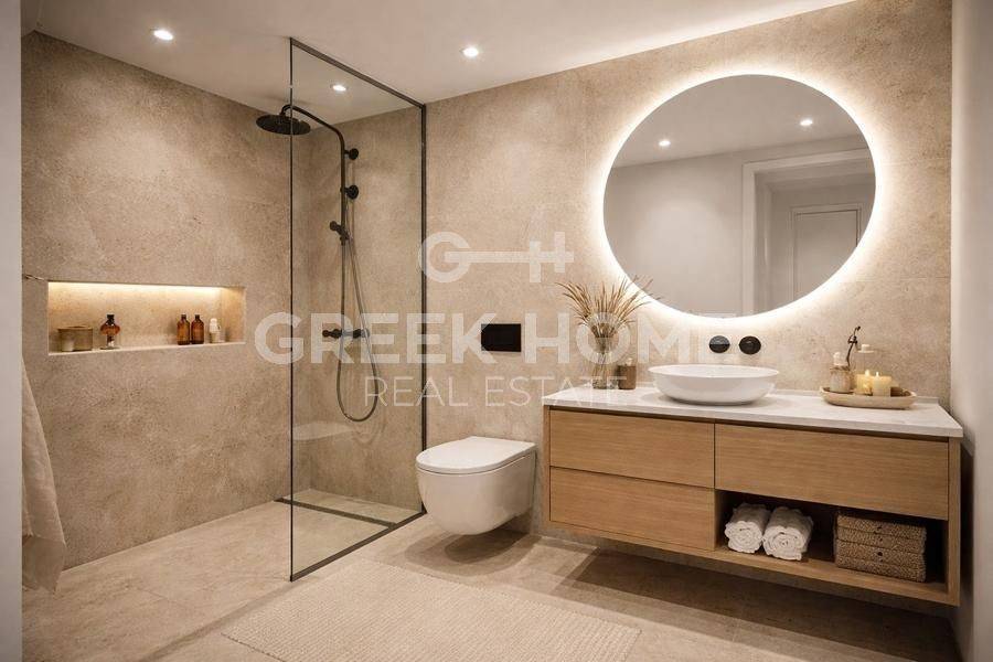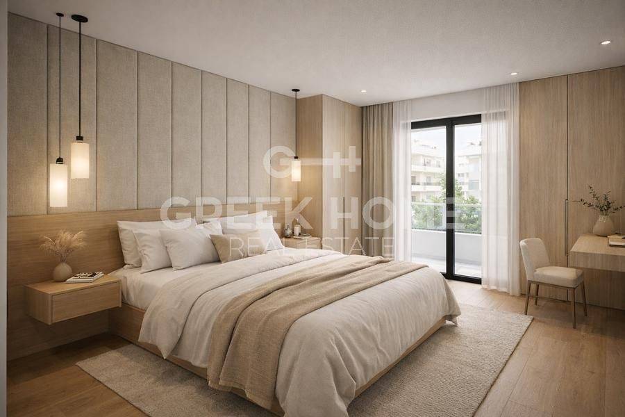 Dafni - Floor Apartment 85sqm bedrooms 2, 3rd, under construction, constructionstage plots, year built 2026, energy class A+, living room, kitchen, bathroom, wc, heating type: autonomous (heat pump), parking, quiet, dual aspect apartment, luminous, corner, frontage, electric roller shutters, storage space, external thermal insulation, balconies, large balconies, elevator, built in appliances, aluminum frames, double glazed windows, wood & tile floors, handicap ramp, night electricity discount rate, secure door, alarm, video doorbell, luxurious, smart home, satellite, southern orientation, investment property, special offer, close to entertainment (up to 100m), close to market (up to 100m), close to school (up to 100m), close to super market (up to 100m), close to metro/train (up to 200m).