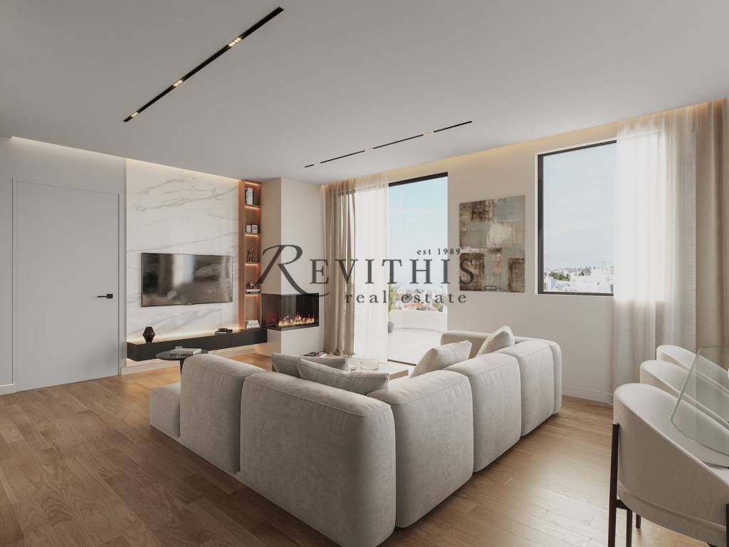 A luxurious 124 sq.m. penthouse townhouse is available for sale, arranged over two levels (5th and 6th floors), in the area of Elliniko. This is a bright property under construction, with an estimated delivery in September 2027, designed to high standards of quality and energy efficiency (Energy Class A+), in a quiet and privileged location close to metro, public transport, parks, the sea, shops, and dining. The residence is configured as follows: ✦ 5th Floor: one master bedroom, WC, and an open-plan living room, dining area, and kitchen ✦ 6th Floor: two master bedrooms with access to a private rooftop area featuring a private jacuzzi It stands out for its penthouse status and exclusive rooftop space, offering moments of relaxation and privacy, combining comfort and luxury. The townhouse features autonomous heating with a heat pump, underfloor heating, air conditioning, aluminum frames with double energy-efficient glazing, a bioethanol fireplace, electric shutters, insect screens, and a security door. Additionally, it includes a storage room, internal staircase, infrastructure for electric vehicle charging, provision for a solar water heater, and an alarm system. An ideal choice for those seeking a modern and luxurious home with private outdoor spaces and a high standard of living.