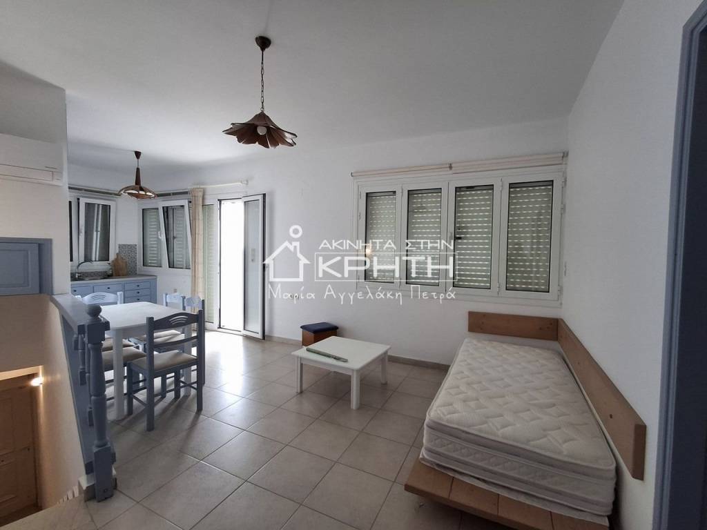 67sqm apartment, 1st floor, in Makry Gialos. It is renovated and has aluminum frames, an air conditioner, it is furnished and equipped with electrical appliances. On the ground floor there is a bedroom with a large bed, wardrobe and bathroom, on the first floor we find a large, bright and very well-arranged open space, a bedroom with a large wardrobe and a modern bathroom. A special point is the large terrace which offers an unobstructed view of the sea, as the apartment is located just 10 meters from the beach. It is located just 2 kilometers from the beach of Makry Gialos. The nearest airport is Sitia, about 40 minutes away, while the airport and port of Heraklion are about 2 hours away. The apartment is offered for long-term rental. MAKRIS GIALOS Makris Gialos is located 23km east of Ierapetra. Its characteristic is the sandy, shallow organized beach. The coastal pedestrian street flooded with taverns, cafes and colorful tourist shops, offers safety and entertainment to both young and old. From the port there are, in the summer months, boat routes to the magnificent Koufonisi. A destination with great archaeological interest and not only! In close proximity you will find Diaskari beach and the beautiful tropical beach of Ammoudi. Distance from the sea 10, Energy class Energy class H, With furnitures, Air conditioning 1