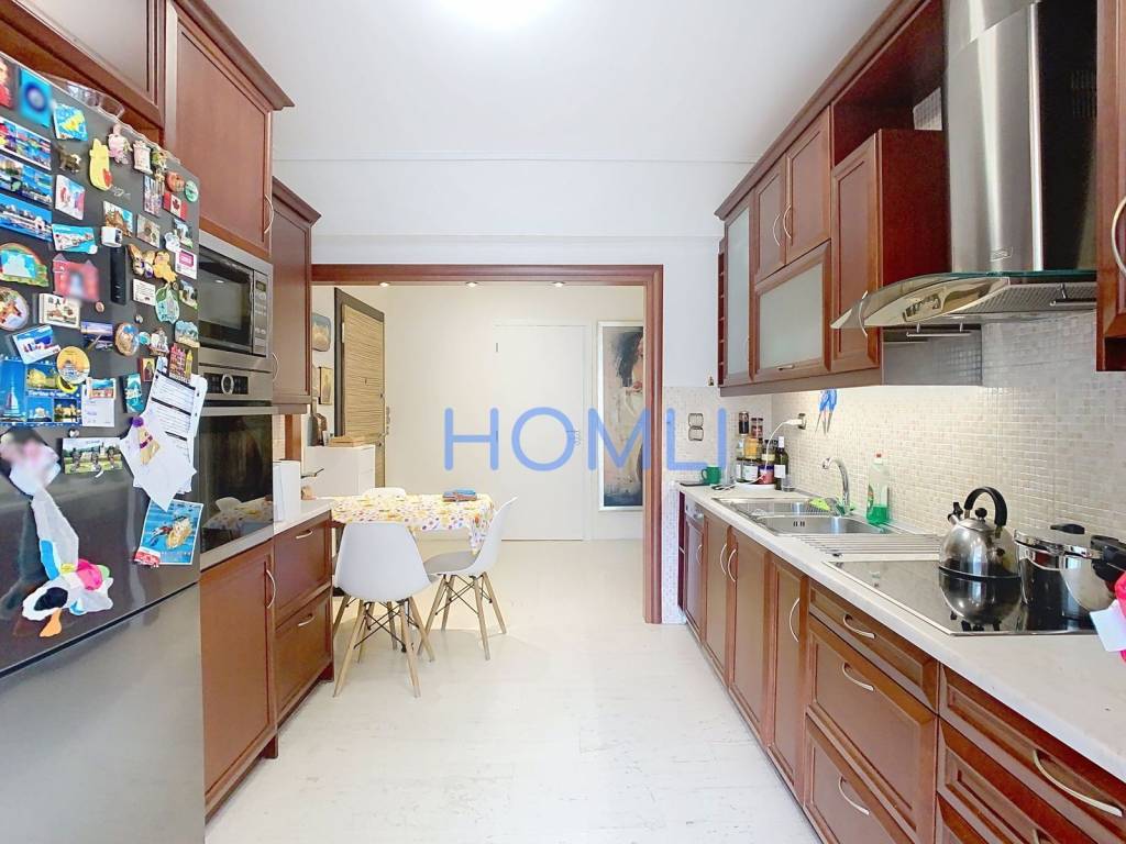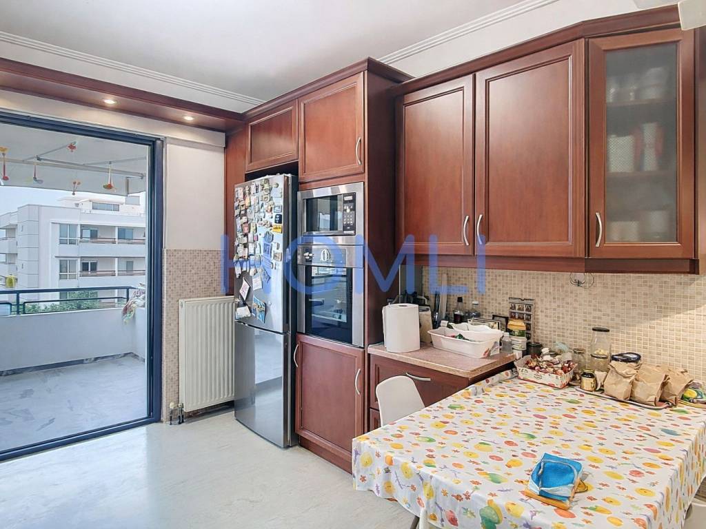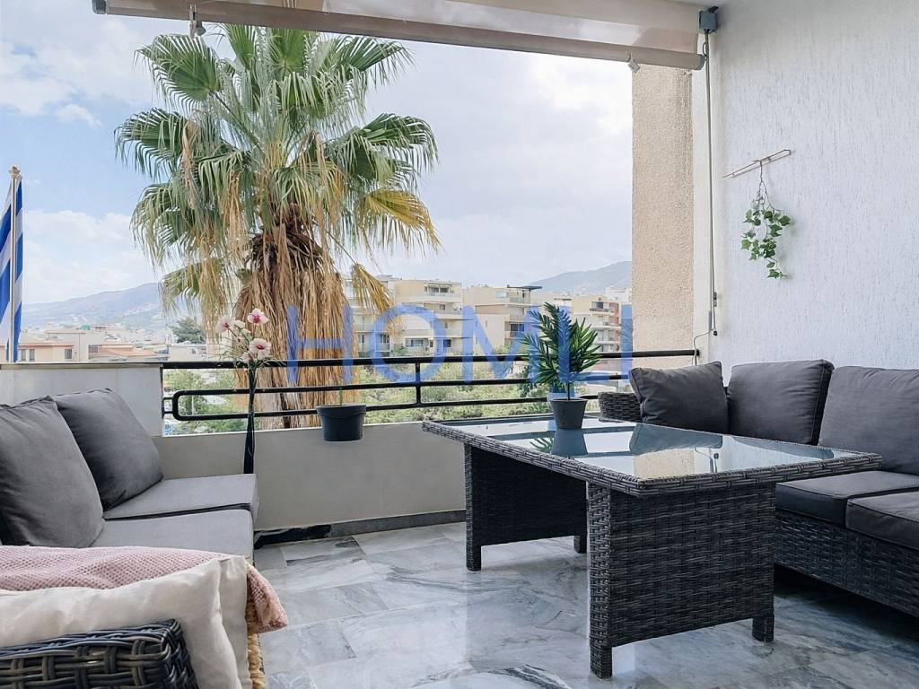 Renovated 4th-floor penthouse apartment in a great location in Alimos, with parking, a perimeter garden, large balconies, mountain views, and an open space. It is airy, quite bright, and has an excellent layout. It features a large elevator, autonomous oil heating, a new solar water heater, awnings, screens, roof insulation with asphalt felt, a security door, fiber optic installation, and a 10 sq.m. underground storage room. There is also the possibility of connecting to natural gas. In a privileged location, just a 5-minute walk from the large "Lofos Pani" park, just 14 minutes from "Kalamakiou" beach, and 2 km from the "Alimos" metro station. HOMLI, property code 28516, contact us by phone at 2104446498.