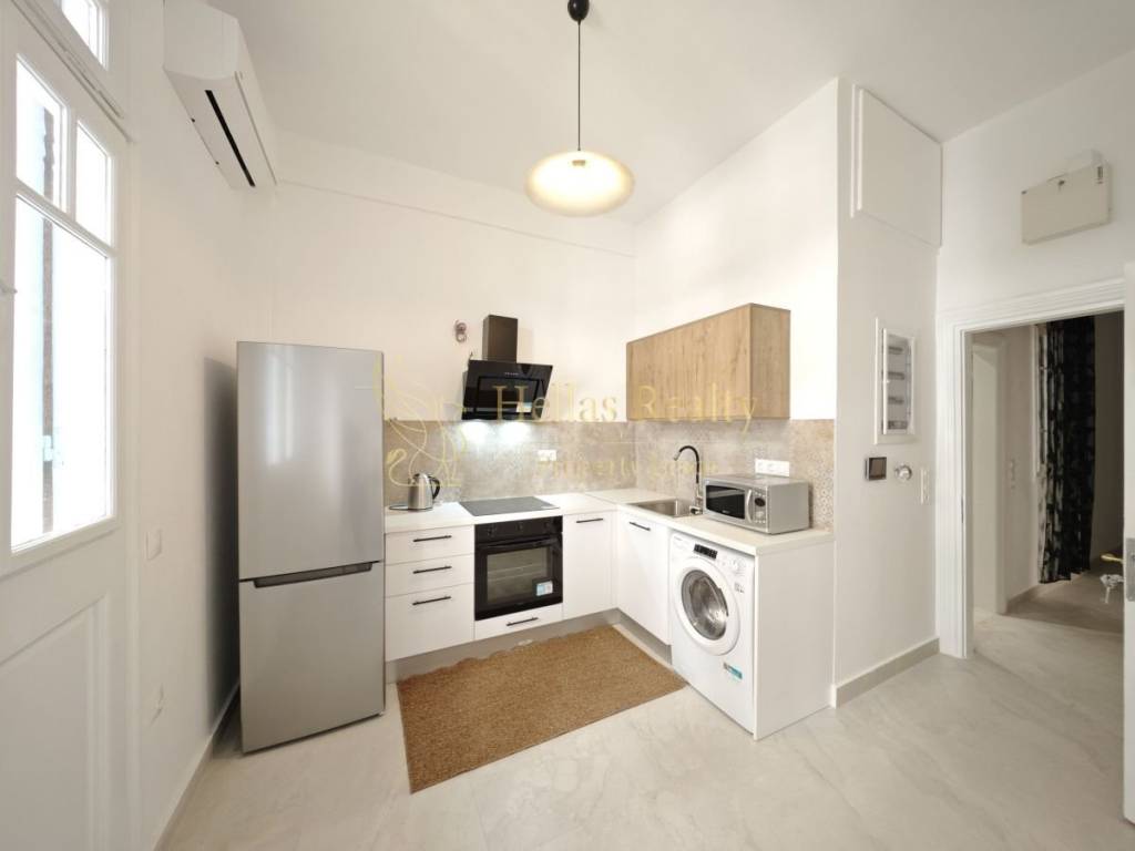 Property Code: 13528 - Apartment FOR RENT in Exarchia - Neapoli Mouseio for € 650 . This 52.00 sq. m. furnished Apartment is on the Mezzanine floor and features 1 Bedroom, Livingroom, Kitchen, bathroom . The property also boasts Heating system: Air conditioner, tiled and wood floors, Window frames: Wooden, garden, A/C, alarm system, electrical appliances, double-glazed windows, entry stairs, intercom TV, optical fiber. The building was constructed in 1930 and renovated in 2026 . Building Energy Rating: D