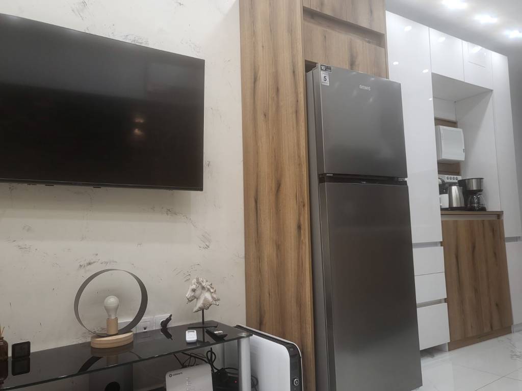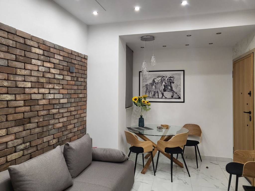 Πλήρως επιπλωμένο και πλήρως εξοπλισμένο διαμέρισμα με μεγάλη ενιαία σαλο-κουζίνα, ευρύχωρο υπνοδωμάτιο με διπλό κρεβάτι και μεγάλη ντουλάπα, καθώς και μεγάλο μπάνιο. Διαθέτει επίσης διπλό καναπέ-κρεβάτι και σύγχρονες ηλεκτρικές συσκευές, όπως πλυντήριο και στεγνωτήριο, μεγάλο ψυγείο-καταψύκτη, ηλεκτρική κουζίνα με φούρνο και 4 κεραμικές εστίες, 2 τηλεοράσεις, καθώς και πλήθος μικροσυσκευών. Παρότι η ενεργειακή κλάση είναι Η, η θέρμανση/ψύξη γίνεται με 2 σύγχρονα κλιματιστικά inverter (σαλόνι-υπνοδωμάτιο) και υπάρχει αφυγραντήρας για άνεση και οικονομία, ενώ στο μπάνιο υπάρχει επιπλέον μικρό κλιματιστικό/θερμαντικό. Διαθέτει2 μικρές βεράντες και κουνουπιέρες. Είναι πρόσφατα ανακαινισμένο (πριν από 6 μήνες), με νέο, μοντέρνο εξοπλισμό σε όλο το σπίτι