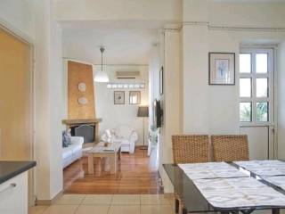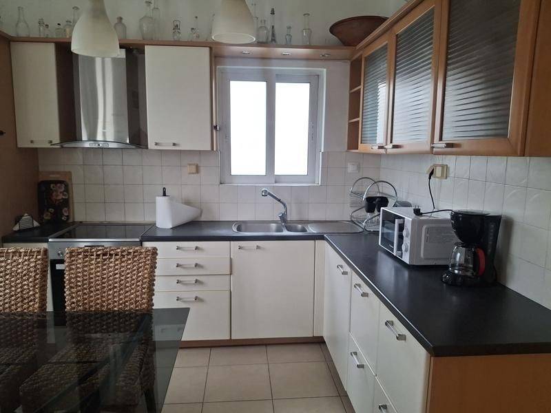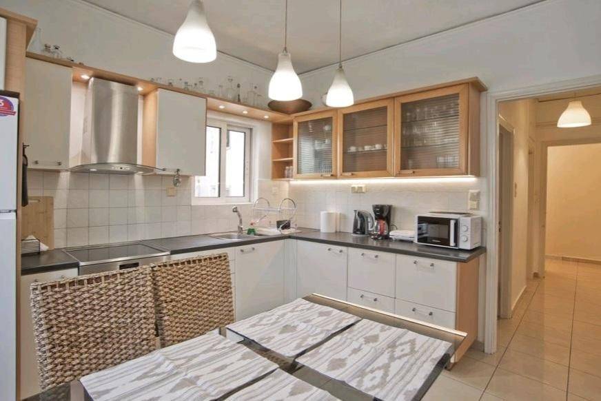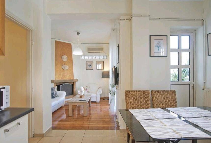 Moschato - Apartment 58sqm fully furnished, bedroom, levels 1, 1st, excellent condition, year built 1980, renovation year 2022, energy class D, living room, hall, kitchen, bathroom, wc, air condition, parking, quiet, dual aspect apartment, luminous, unobstructed view view, frontage, painted, electric roller shutters, solar heater, fireplace, balconies, loft storage, garden, aluminum frames, double glazed windows, door screen, ceramic tiles floors, secure door, video doorbell, internet, within city plan, residential zone, access from asphalt.