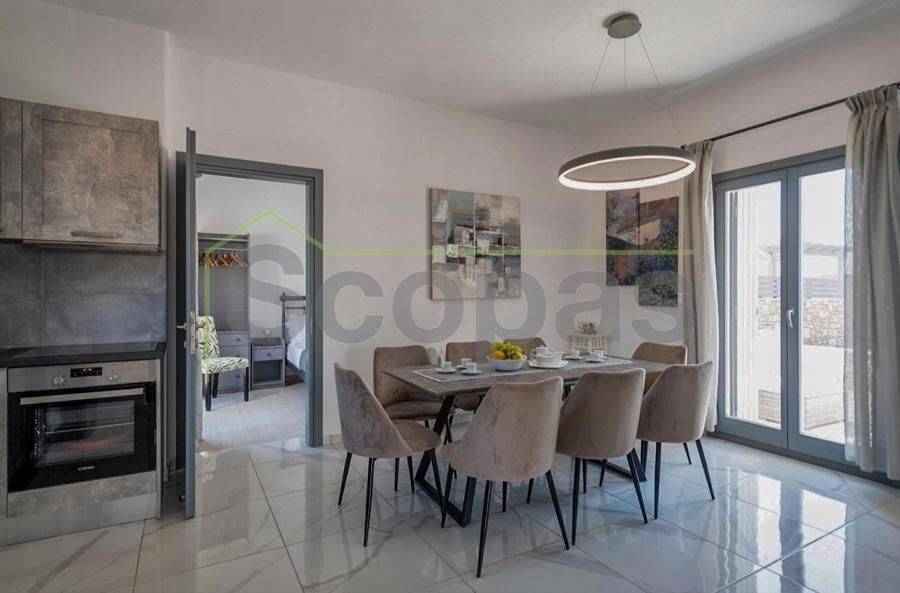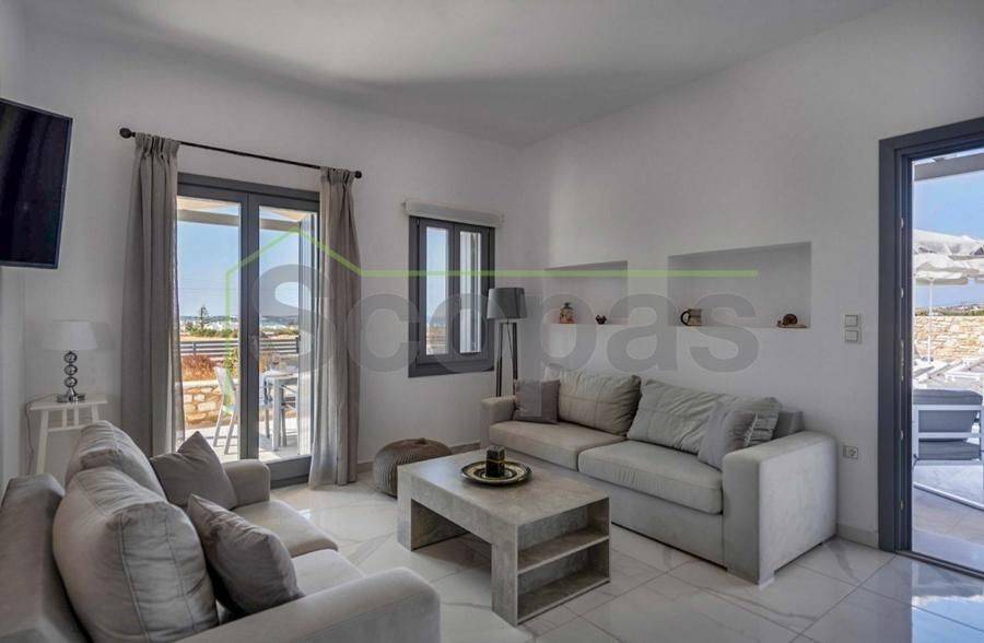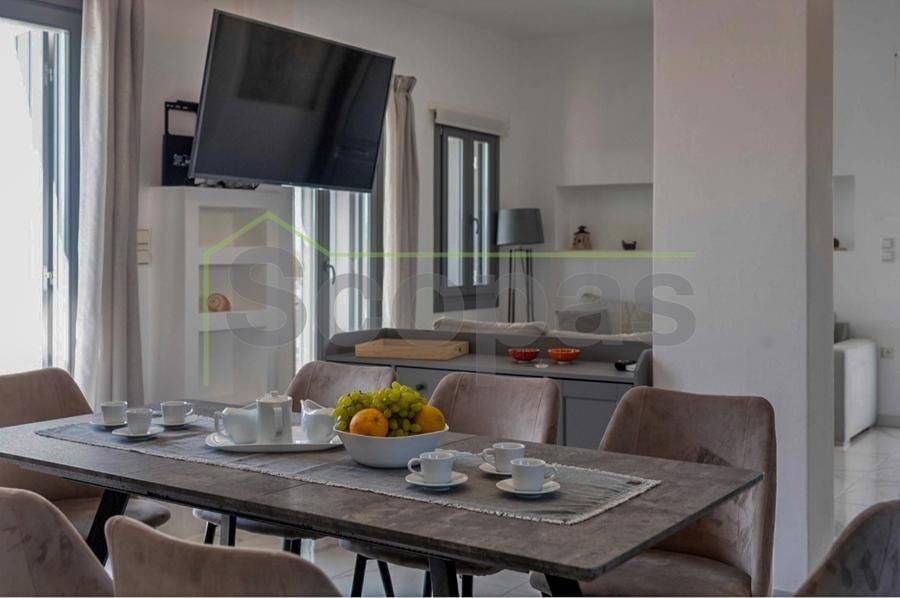 House of 190m2 for sale by SCOPAS REAL ESTATE & CONSTRUCTION. Property of 190m2 in a complex of 3 houses, in southern Paros, in Kampos. The house has 3- levels. Basement - Ground floor - 1st floor. It consists of 4 bedrooms, 3 bathrooms, 1 W/C, a kitchen, a dining room area and a living room area. In addition, it has a private pool, a garden and 2-3 parking spaces. Southeast orientation with a unique view of the Aegean Sea and the channel of Antiparos-Paros. Accessible by paved road, 500m from the nearest beach, 5km from the airport, 7km from the port.