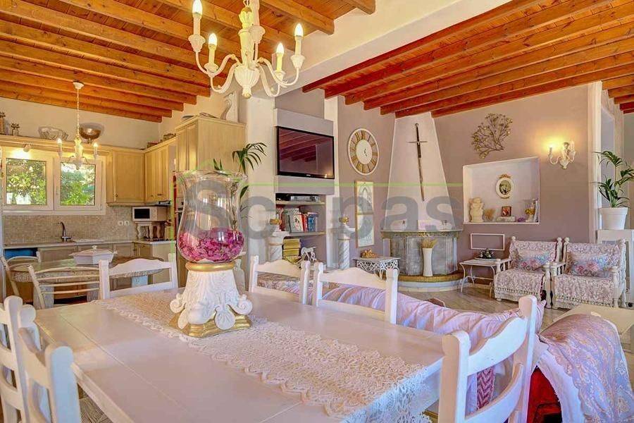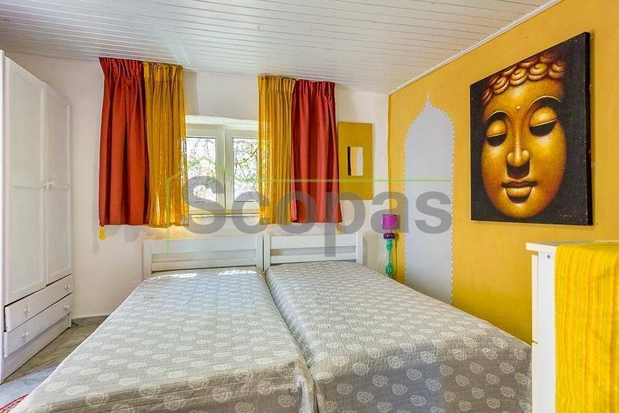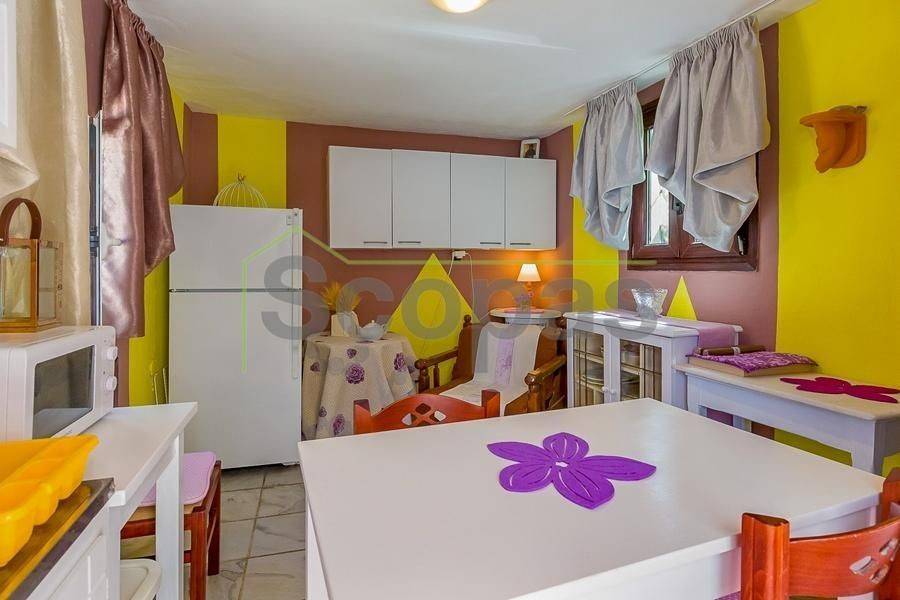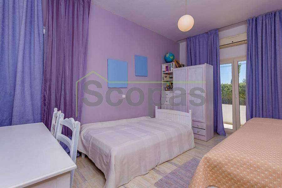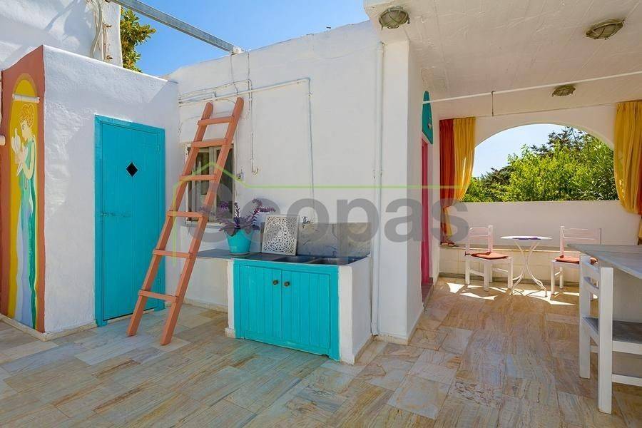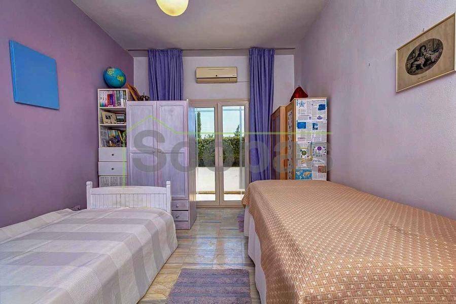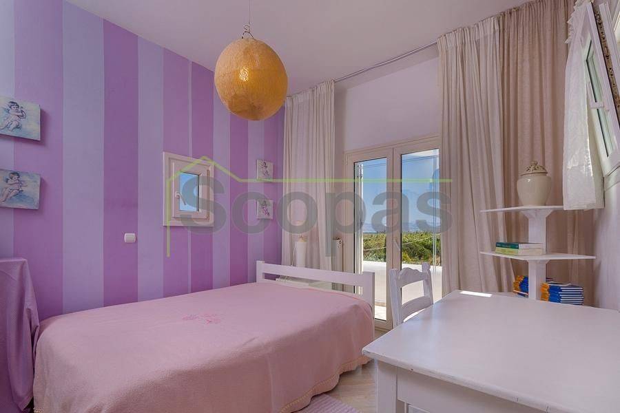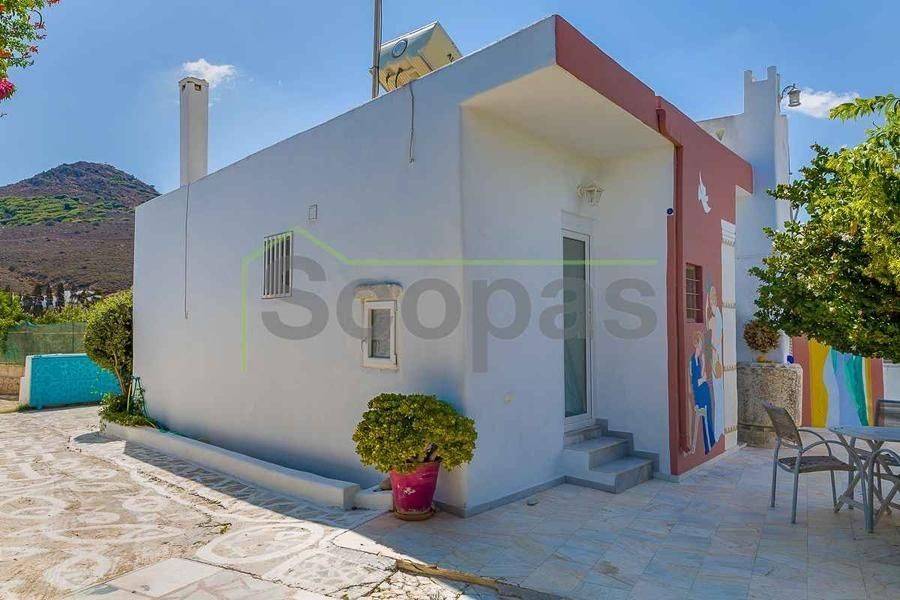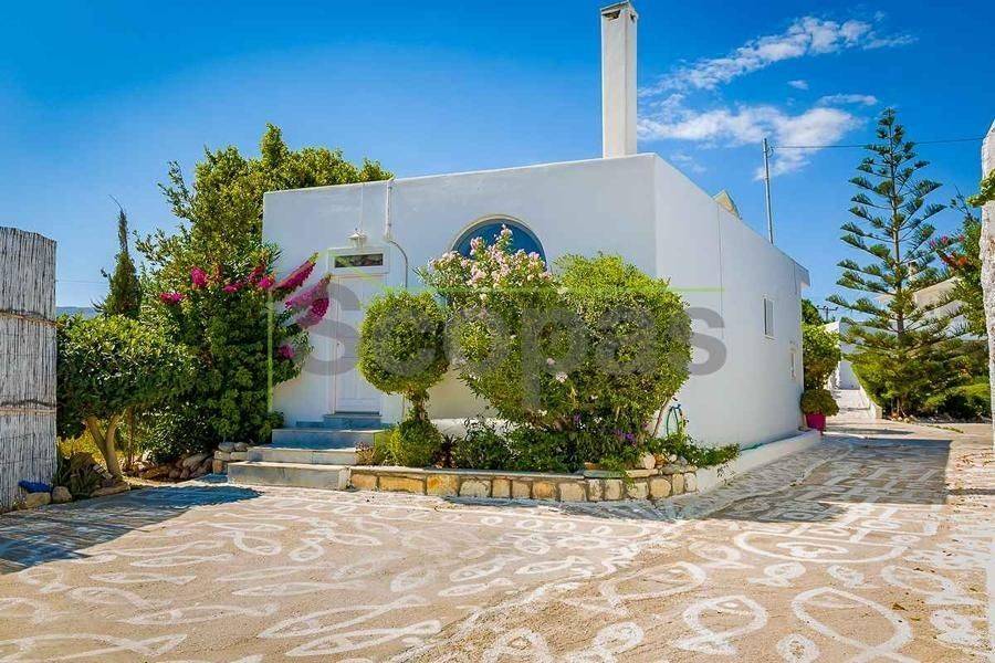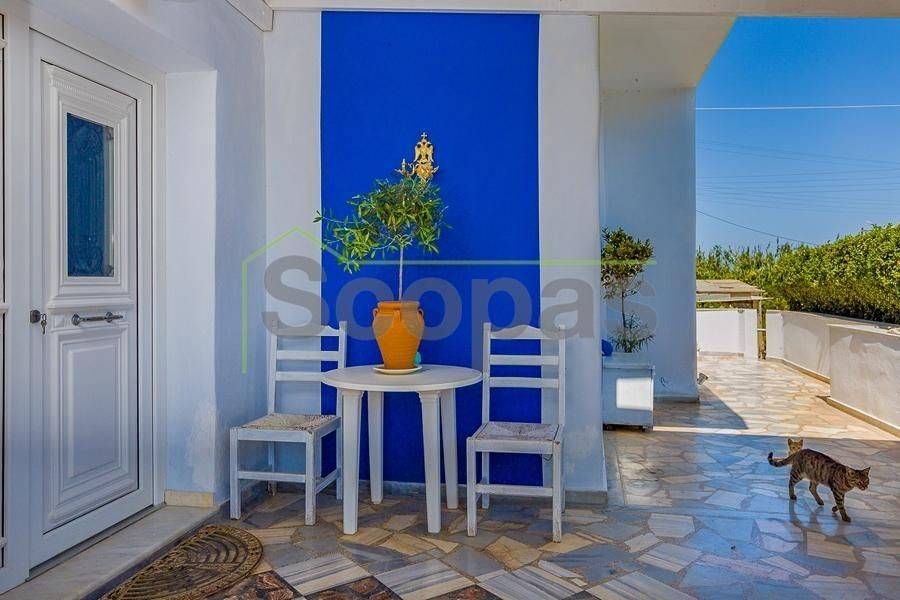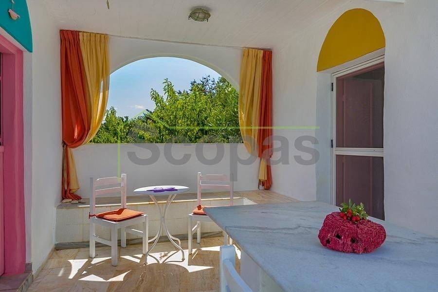 Villa for sale by SCOPAS REAL ESTATE & CONSTRUCTION. This two-storey villa, covering an area of 200m², is located in eastern Paros, specifically in the Molos area. The residence features three bedrooms, two bathrooms, a kitchen, and a living-dining area. In addition, the property includes two fully equipped independent ground-floor studios, each 100m². Each studio comprises one bedroom, one bathroom, a living area, and a kitchen. There are ample parking spaces outside, a BBQ area, a garden, and a storage room adjacent to the studios. The property has obtained a permit for a swimming pool. It is suitable for use as a permanent residence or a holiday home in the picturesque Cycladic landscape. Furthermore, it presents an excellent investment opportunity as it can function as three independent residences. The villa boasts a southeastern orientation with sea views from the first floor of the main house. Access is via a dirt road. It is 1.5km from Molos Beach, 13km from the port of Paroikia, and 19.6km from the airport. Information and characteristics of the properties have been compiled based on data provided by the principal. - The point marked on the map does not reflect the actual address of the property. - An identity card or VAT number is necessary when identifying the property, in accordance with Law N.4072/2012 - Official Gazette 86/A/11-4-2012.