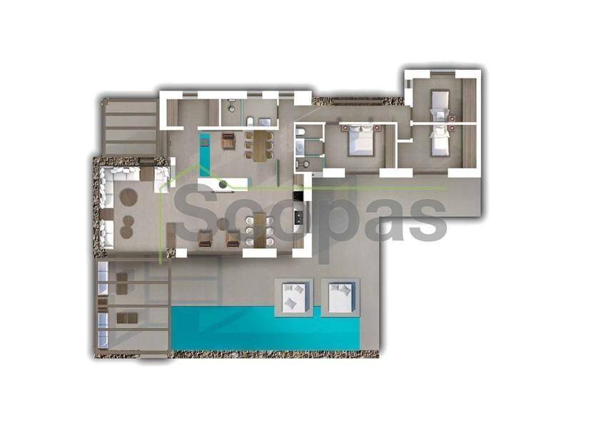 Detached house for sale by SCOPAS REAL ESTATE & CONSTRUCTION. Ground-floor house of 150m2 located in eastern Paros, in the Tsoukalia area. It comprises 3 bedrooms, 2 bathrooms, a living room, and a kitchen. Externally, it features a garden, parking space, and a swimming pool. Southeast orientation with sea views and overlooking the channel of Naxos. Access is via a dirt road (approximately the last 100m). 1.6 km from Glyfa beach, 13.9 km from the port, 23.7 km from the airport. The details and features of the property have been provided based on the information supplied by the owner. - The point on the map does not correspond to the actual address of the property. - When indicating the property, an identity card or VAT number is required, in accordance with Law N.4072/2012 - Official Gazette 86/A/11-4-2012.