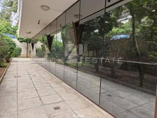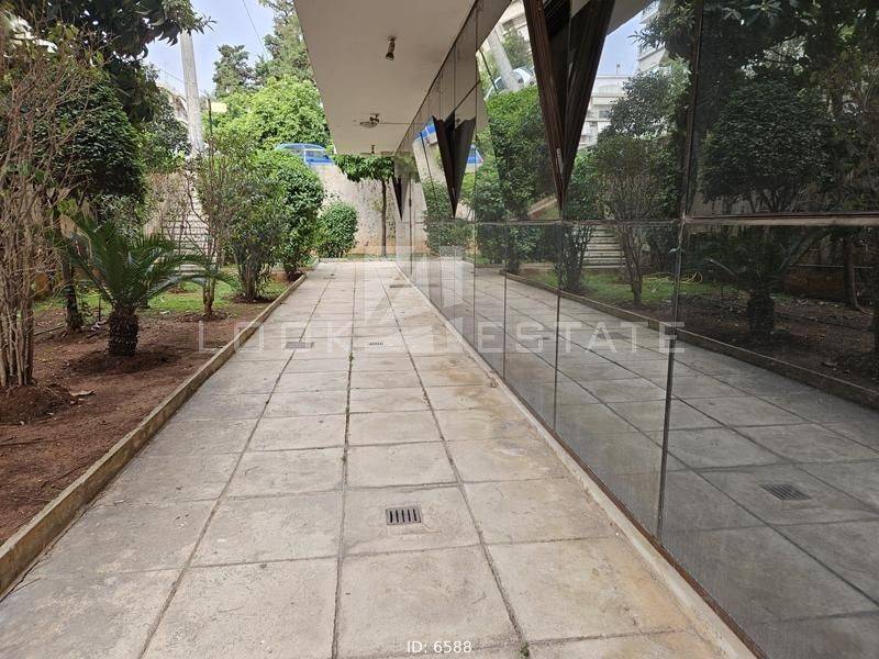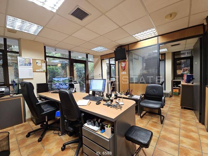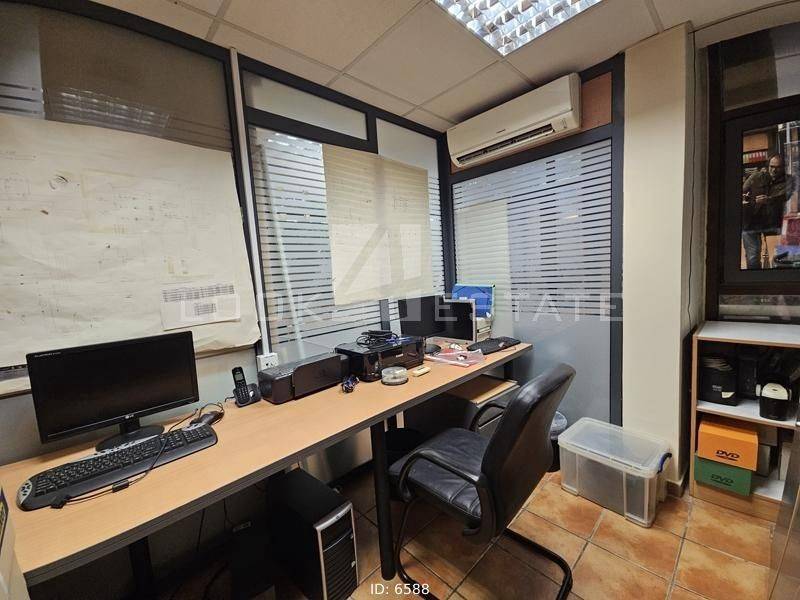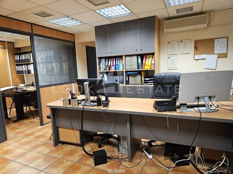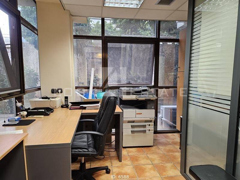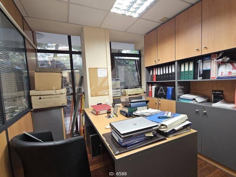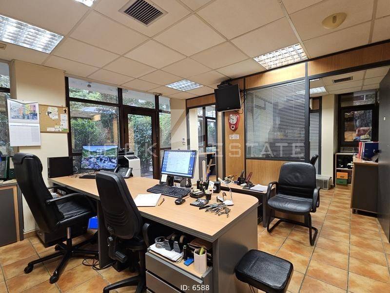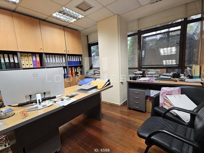 Paleo Faliro, Edem - Office 120sqm spaces 8, levels 1, ground floor, renovated, year built 1978, energy class D, kitchen, 2 wc, heating type: no heating (air condition), a/c type splits, corner, structured office space, drop ceiling, structured wiring, equipped, aluminum frames, double glazed windows, reclining windows, ceramic tiles floors, three phase electricity, secure door, alarm, surveillance cameras, fire detection, luxurious, courtyard area cement, ventilation, price is negotiable, close to banks (up to 1500m), close to tram station (up to 1000m), close to sea (up to 500m), close to bus stop (up to 200m).