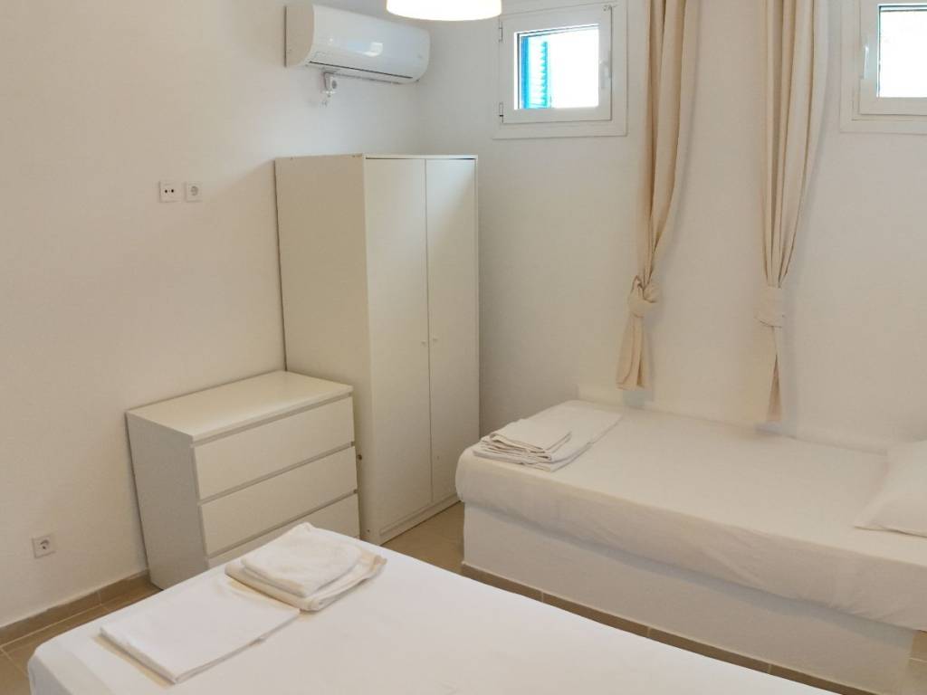 it is fully equipped and furnished, the price includes water and internet garden with lawn and barbecue available, parking available distance from the sea 400 meters near a pizza in katos agio petro also available for july or august only at the price of 8000 capacity 8 people 3 double beds and 2 single