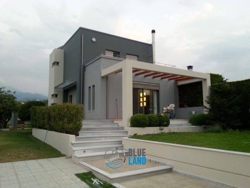 Rio, Villa For Sale, 260 sq.m., In Plot 2010 sq.m., 3 Level(s), 2 Kitchen(s), 3 Bathroom(s), 1 WC, Heating: Personal Petrol, View: Good, Building Year: 2007, Floor type: Wooden floors, Type of doors: Aluminum, Features: Security door, Security alarm, Storage room, Night stream, Satellite TV, Playroom, Inner stairs, Sieves, Balcony tents, Balconies, Luxury, Airy, On Frontage, Bright, Underfloor, AirConditioning, Solar water system, Back yard (Garden), New Development, Painted, Renovated, Distance from: Seaside (m): 50, Price: 450.000€. Blueland real estate, Tel: 2611811812, email: blueland.patra@gmail.com